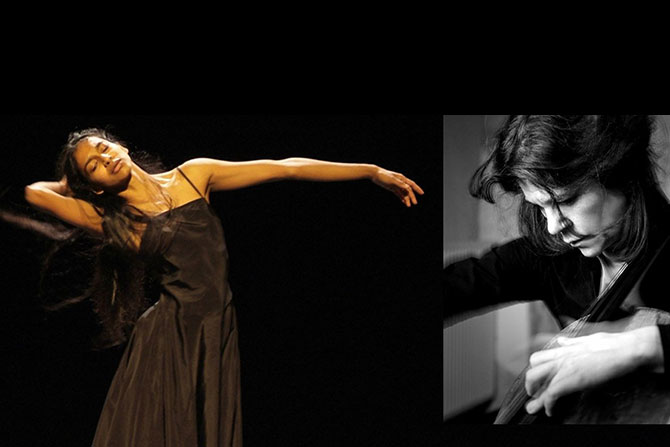 Un pur moment de grâce, un enchantement. Trop court, hélas. Shantala Shivalingappa, danseuse indienne et contemporaine, et Sonia Wieder-Atherton, violoncelliste, un duo sensible, une rencontre exceptionnelle et rare sur une suite de Bach. Shantala Shivalingappa, à jamais l’Ophélie de Peter Brook pour qui la découvrait dans cette tragédie d’Hamlet et dont la folie se lisait dans son regard si intense et son corps ployé sous la douleur, improvise sur une suite de Bach. Mais ce qui se noue avec la musique se joue aussi avec sa partenaire violoncelliste, Sonia Wieder-Atherton. L’archer qui glisse sur les cordes, le mouvement du poignet qui gagne le bras fait danser le corps de l’instrumentiste en son entier. C’est donc bien un véritable duo où chacun s’observe avec attention, chacune danse avec l’autre, à sa façon. Shantala Shivalingappa n’hésite pas à suspendre son pas pour observer sa partenaire, l’entourer même de ses bras si mobiles qui caressent l’air avec tant d’expressivité et de poésie. La toucher parfois pour sembler vouloir comprendre ce qui habite et meut ce corps irradié par la musique de Bach. Reprendre même et métamorphoser ce mouvement singulier qui traverse le corps attaché fermement au violoncelle comme on étreint un partenaire. Car il s’agit d’une écoute profonde et absolue entre ces deux artistes qui s’observent avec grande attention pour sembler vouloir percer ce mystère du geste traversé et habité par la phrase musicale. Bach est le trait d’union entre ces deux-là qui se rencontrent et dialoguent magnifiquement avec autant de curiosité que d’admiration complice. Il faut voir le regard intense de Shantala Shivalingappa posé sur sa partenaire mais aussi celui tout aussi soutenu de Sonia Wieder-Atherton sur cette danseuse si gracile aux mouvements si denses, les mains comme des ailes suspendues, les doigts comme autant de pennes caressant l’air quand ils ne la fouettent pas, aux pieds guerriers frappant le sol de leurs talons. Et la tension est palpable pour le public qui les encercle. Rien ne nous échappe. Ni du souffle qui, épousant la partition de Bach, s’accélère, se cherche ou se meurt, ni des regards qui s’agrippent, ni des moindres variations des corps attentifs et nerveux qui oscillent entre tension et relâchement. Et ce qui bouleverse tout soudain c’est le silence qui s’abat quand l’archer suspend son envol et que se pose la danseuse. Combien celui-ci, ce silence, est traversé, labouré, de ce qui fut donné, partagé, déployé, et comme concentré là, dans ces courts moments de respiration où tout n’est qu’attente fébrile et qu’ose à peine bruisser le public.