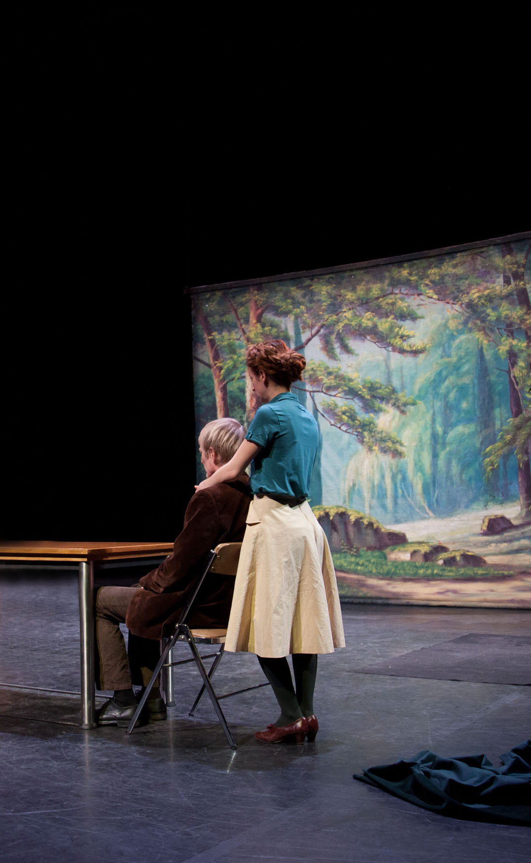 À la fin, le plateau est comme un champ de bataille de fin de monde, ils quittent la scène défaits ; Janine part, elle, en s’excusant.