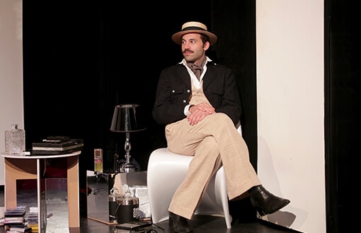 Gabriel Marc, l’auteur et l’interprète, mis en scène par Guila Braoudé, nous entraîne en dans une tendresse, défaite de larmoiements officiels, de snobisme périmé. On se laisse prendre dans du vrai menti ici ou là. Tous les doutes que nous avions pu avoir s’envolent. Quelques petits aléas, de minuscules erreurs nous font sourire, de minuscules retentissements qui pourraient nous éloigner du sujet, des costumes plus qu’étranges, aux tailles surprenantes, du jus de pomme qui mousse dans la carafe à whisky, Beauvon-« CRAON » au lieu de Beauvon-« Cran », la mémoire qui flanche ici ou là, etc. Oui ? Et alors ? Le tout est lancé dans une grâce douce et grave qui nous emporte. Ces quelques petits aléas soulignent en fait un très bon travail, souhaitant montrer combien Jacques de Bascher a été secoué dans les difficultés dans lesquelles chacun d’entre nous peut être exposé, explosé même, pourquoi pas. Il en a joué, tachant d’en être fier et Gabriel Marc nous montre tout ça dans un Jacques de Bascher resplendissant. À ne pas manquer, vive les fils qui dépassent et les pantalons à faux plis !!