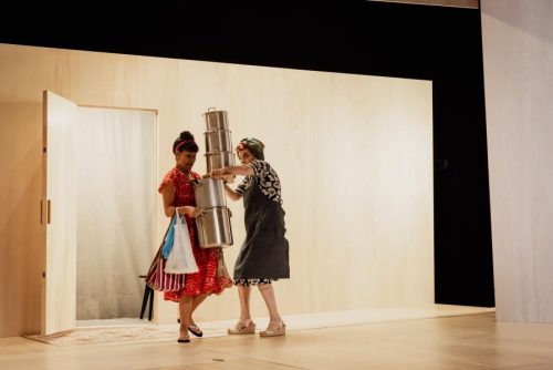 La famille, on se la prend en pleine poire quand les combats obligent au confinement en vase clos. Aly Harkous est Neel, le fils cadet, grande asperge à la Buster Keaton, poète du voyage immobile en équilibre instable, comme en apesanteur, le seul à appréhender sa mort prochaine. « J’aime pas la famille » pourrait dire ce clown tragique « eh bien tu la boufferas quand même, les patates sont pourries et y a plus de farine ». On frôle le grand guignol par moment avec un mouton à égorger sur le tapis de l’entrée.