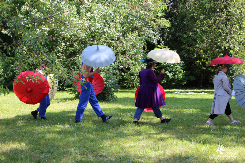 « Quand les blouses tombent ». C’est donc sous une chaleur accablante, le 16 juin, que la foule s’est massée sur les gradins du chapiteau Lili. Aux artistes qui animaient les ateliers, et aux apprenti.e.s artistes qui y ont participé, se sont joints les trois jeunes circassiens du projet Faille. Léa Leprêtre, Johannes Holm Veje et Martin Richard, en salopette bleue et entre deux auditons, se sont mis à escalader les poteaux, ou à envoyer valser une grande échelle à trois centimètres de leurs têtes, suscitant les « ah » et les « oh » d’une foule attentive.