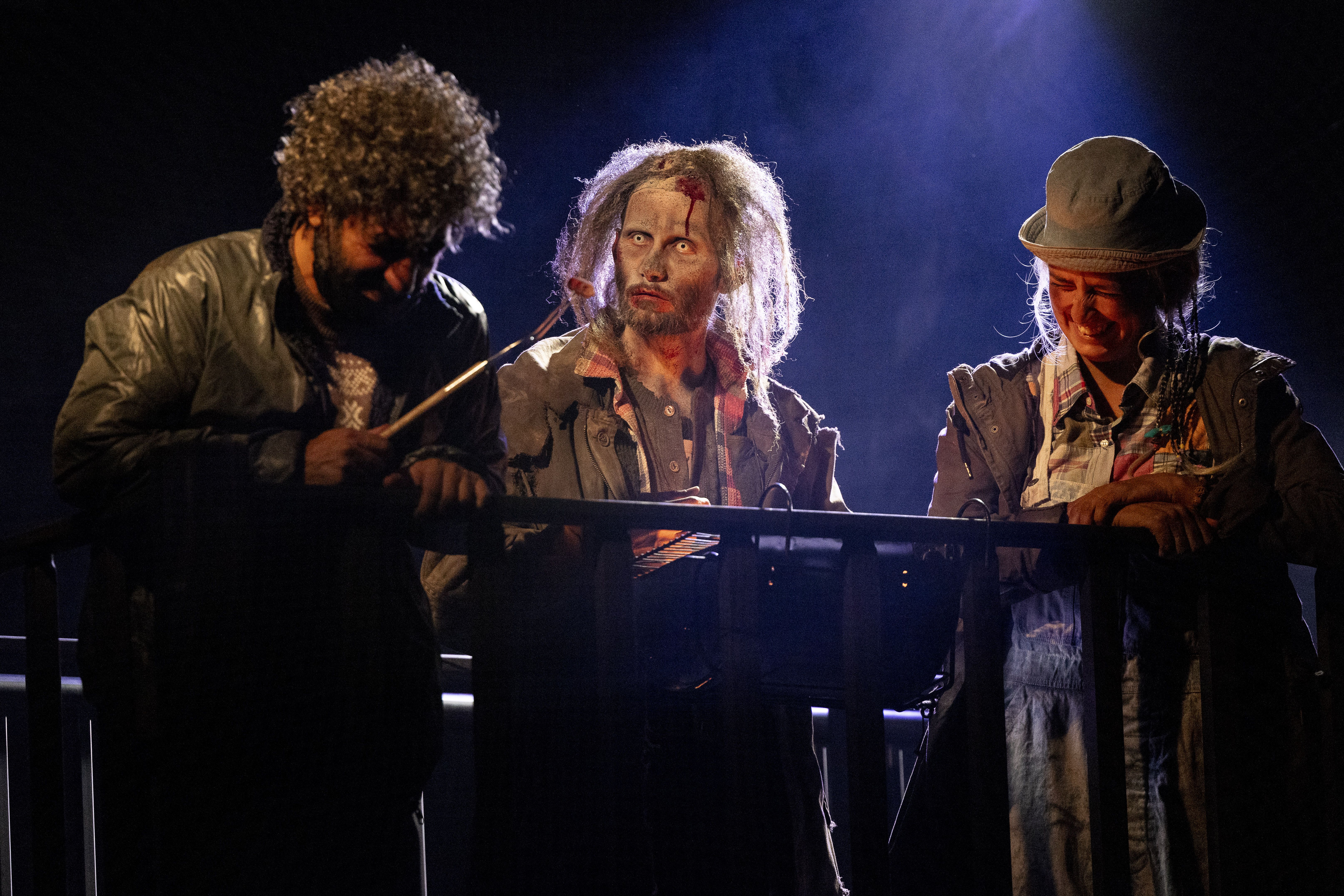 Rares sont les dystopies qui utilisent la bouffonnerie comme ressors dramatique, 1984 d’Orwell était glaçant. Julien Guyomard n’hésite pas à s’appuyer sur la fable pour représenter le déclassement généralisé dans un monde d’exclusion. Sur un plateau à mi-chemin entre la zone industrielle et le chantier de démolition encerclé de miradors, une bande d’énergumènes belliqueux s’affairent lorsque survient la rencontre du troisième type cocasse dont on vous laisse la primeur.