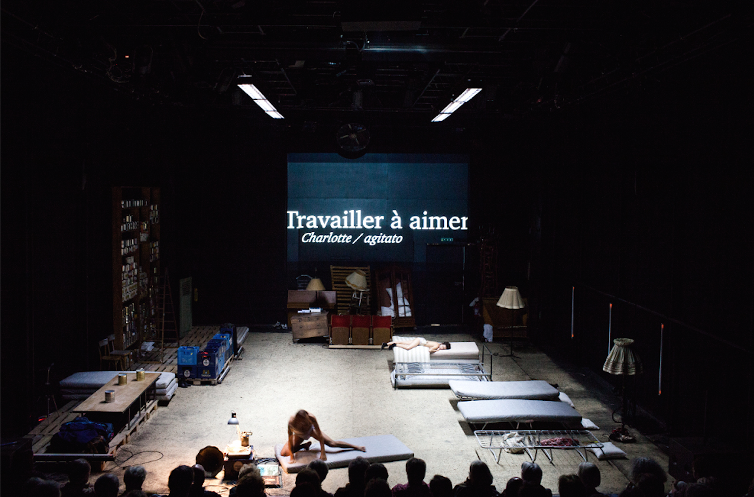 Cette histoire est fascinante car elle prend tous les détours de la comédie : mime, folie, blague, petites tranches de quotidien, éclat de rire. Puis elle se questionne tourne en rond, et s’enfonce dans la tragédie. On apprécie d’emblée le fait que cette histoire, dans laquelle il ne se passe rien, soit si passionnante. Et l’adaptation est complètement juste car elle fonctionne en séquences, pour rendre ce que tend à rendre un roman. Elle est composée de scènes d’une minute, et d’autres, fleuves, débattent, ressassent, et semblent durer une éternité. Intelligente construction. Le spectacle est fait de phases, d’états. Et ça ne s’arrête jamais. Comme des enfants, ces amoureux dépendants et accrochés l’un à l’autre se lassent et changent d’activité, comme la metteure en scène change d’outils, de médias pour nous raconter leur vie. Pour ne pas s’ennuyer, on invente, on brasse, on filme, on fait tomber des choses, on saute, on danse, on fait l’amour. Vif comme l’enfance, violent comme un orage, ce spectacle est moderne, innocent, intelligent, jeune. Et c’est aussi à peu de choses près la définition qu’il donne de l’amour.
