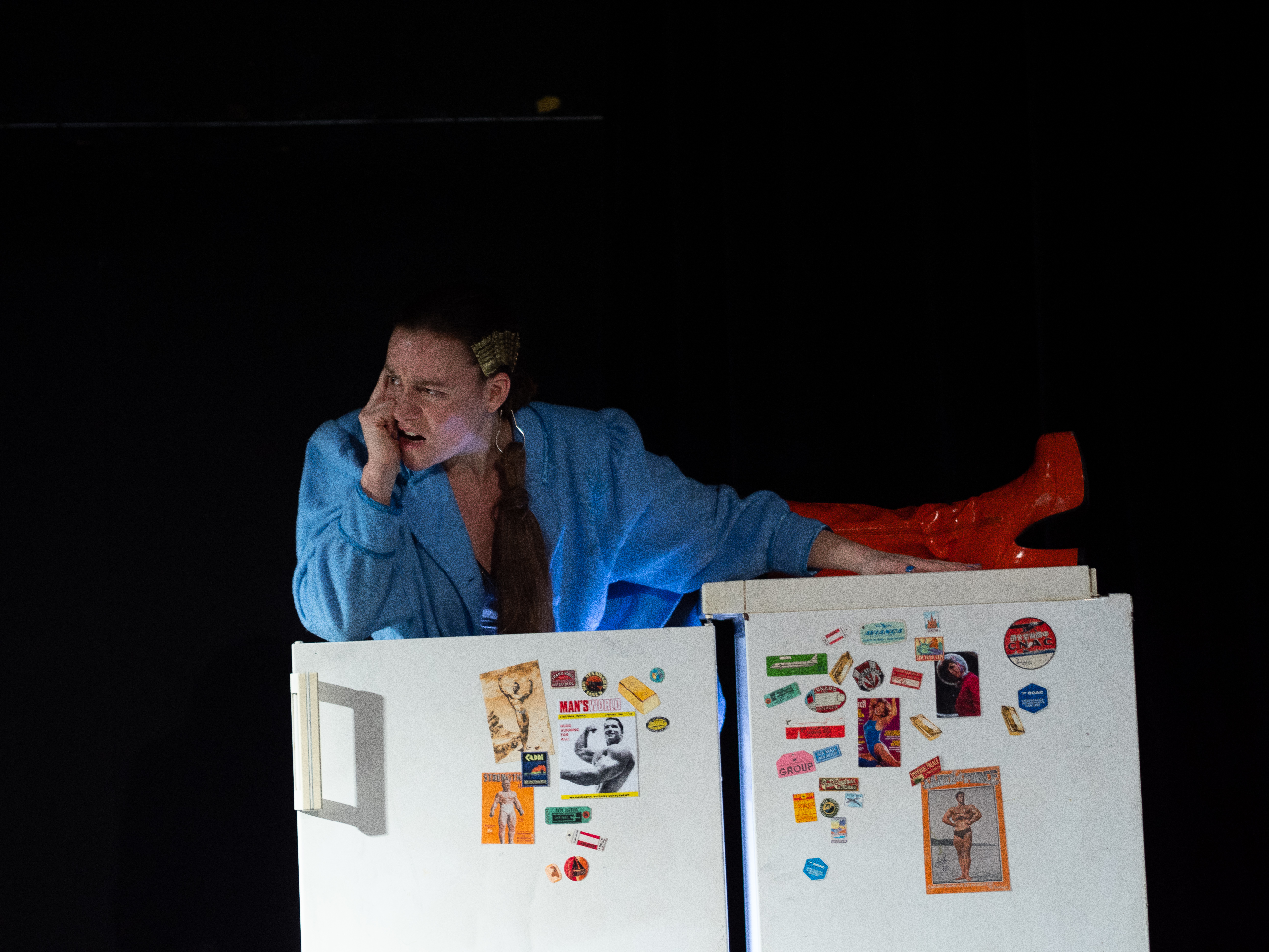 Allô la terre ?! Dans sa navette spatiale Loretta Strong est en route pour Betelgeuse pour semer de l’or. Son coéquipier Steve Morton vient de mourir. La terre ne répond plus, explosée par des hommes-singes de l’étoile polaire. Loretta Strong, perdue dans l’espace, divague. Monsieur Drake ne répond plus, les vénusiens attaquent, des rats la féconde, Loretta Strong accouche de mystérieuses créatures hybrides, mange son coéquipier, et au bout du fil parle une mystérieuse Linda… Pièce extravagante du génial Copi, sans queue ni tête, objet théâtral pas vraiment identifié, coquecigrue fantastique et saut dans l’inconnu pour qui s’aventure dans cet espace intersidéral, cette planète née de l’imagination d’un argentin capable de vous la jouer nu, peint en vert et sexe en rouge, ou habillé en boniche hitchcockienne, d’en faire une demi-heure comme trois. Maïté Lottin s’attaque bravement à ce texte monstre, capable de vous engloutir, vous bouffer tout cru, ou de vous faire grimper au pinacle et atteindre le firmament. Bon, là, nos sentiments oscillent entre les deux. Maïté Lottin ne manque pas d’énergie, un peu trop sans doute. Ça finit par écraser toutes nuances et vous épuiser de même. Ça bouillonne et vrille dans tous les sens. C’est foutraque, borderline et parfois maladroit. On cherche en vain une direction artistique. Des idées, il n’en manque pas, c’est vrai. Entre la gazinière et le frigo, ça galope ferme. On pioche bien ici et là quelques trouvailles, trop vite abandonnées, jamais vraiment exploitées ou conduites jusqu’au bout. Il y a quand même un emprunt au Mummenchanz fort à propos et qui surprend agréablement. Le texte, c’est vrai, part en apparence dans tous les sens et ce qui manque ici c’est de relier cet éparpillement où à défaut, entre chaque séquence, trouver une transition. C’est dans ces articulations-là que tout se joue, articulations propres à toutes métamorphoses, pour ne pas en rester collé au texte trop parcellaire. C’est là, dans ce vide, que la mise en scène et le comédien font leur nid. Et c’est ce qui manque cruellement. Les séquences s’enchaînent, plaquées, entrechoquées les unes contre les autres. Maïté Lottin ne joue que le texte, rien que le texte qui n’est pourtant chez Copi qu’un prétexte pour l’envol d’un acteur protéiforme, capable de vous l’empoigner et de le faire décoller vers l’infini et au-delà… Transition qui permettrait également de respirer un peu et de ne pas avoir ce sentiment permanent d’apnée, d’asphyxie. Et dans ce décor cheap, fait de bric et de broc, dont elle tire parti au mieux (mention spéciale pour un simple bâton de bois métamorphosé en tableau de bord, comme quoi au théâtre il suffit d’un rien…) Maïté Lottin se démène mais toupille, en orbite sur elle-même. Ce n’est pas sans qualité, c’est vrai, mais il aurait fallu un vrai regard extérieur exigeant pour amener le personnage et la pièce dans une autre dimension, faire de ce plateau de théâtre un vaisseau spatial capable de vous embarquer bien plus loin que la réalité du texte.