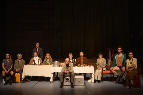 Où l’on retrouve l’écriture si particulière et reconnaissable de l’auteur du Pays Lointain, une langue travaillée avec une précision maniaque qui donne à chacun des personnages une épaisseur, une profondeur dramaturgique inouïe. Jean-Luc Lagarce était un grand styliste. Pour s’en convaincre il suffit d’écouter ici le monologue de Madame Tschissick (Elsa Lepoivre) expliquant à celui qui est son amant, Raban (Thomas Gendronneau), pourquoi elle ne renonce pas à son mari (Vincent Dissez). Un moment de théâtre et de littérature, aussi, où l’on est saisi de la toujours modernité d’un auteur parti trop tôt sachant fouailler l’âme humaine dans toute sa complexité, son ambivalence et que la langue au scalpel, dans ses pleins et déliés, révèle au plus juste. Pour qui s’empare de cette écriture, de son rythme interne, de sa complexité qui jamais ne les broie mais les exhausse, c’est le dévoilement pudique d’une relation complexe au monde. Jusque dans leur silence buté, leur sidération parfois devant ce qui est proféré, avec force ou énoncé presque malgré-soi. Pas pour rien que les pièces de Jean-Luc Lagarce soient avant tout des pièces de troupe où la circulation de la parole, de ses enjeux, a son importance dramaturgique. Lui-même qui dirigeait La Roulotte, sa compagnie, n’écrivait que pour ses comparses, ses compagnons de route. Et la réussite de Clément Hervieu-Léger tient justement à ça, d’avoir posé avec soin et la langue et la troupe au centre de sa mise en scène, en dessinant dans cette œuvre chorale les contours de chaque caractère différencié avec minutie, considéré chaque prise de parole, chaque échange, chaque incises que sont les monologues adressés autant à soi qu’au public, comme un acte déterminant.