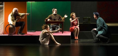 Dans ces conditions, sa transposition à la scène ne pouvait que susciter l’attention en même temps qu’une légère crainte tenant à l’hétérogénéité radicale des deux modes d’expressions. Le moins que l’on puisse dire est que le grand écart est exécuté avec brio. Rossel puise avec intelligence à la poésie, à l’émotion et jusqu’à la sensibilité graphique de l’œuvre, tout en ne cherchant pas outre mesure –écueil que l’on pouvait redouter- à reproduire le manga.Bien sûr, il y a cette histoire si étrange et à laquelle la dramaturgie reste fidèle. En 1998, un homme de quarante-huit ans, un « beauf » (ce concept fonctionnerait-il en japonais ?) prend un train par mégarde, au lendemain d’un congrès professionnel trop arrosé. Quand il s’en rend compte, il est revenu dans sa ville natale. Il s’y promène et s’y endort, dans le temple où repose sa mère. Il se réveille en 1963. Il a quatorze ans et son corps d’enfant. Surtout, il a ses parents, inquiets de son absence, et un père, son père !, celui qui a quitté sa famille sans raisons, un soir d’août de la même année.