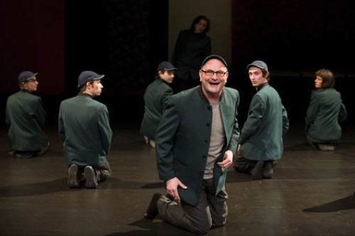 Dorian Rossel n’a pas peur de rentrer dans son sujet, et le fait avec intelligence. Il fait tournoyer autour de cet homme, pris dans le vertige de son histoire, une foule de personnages, incarnés à la volée par six ou sept comédiens en changement permanent. Il le fait aussi avec de la finesse : chaque personnage, chaque lieu, est évoqué plus qu’incarné, par un objet ou un accessoire signifiant, blouse d’écolier, tableau noir, banc, etc… Pour adapter le manga, Rossel affirme l’espace du théâtre et de la théâtralité. D’ailleurs, il prend ses distances avec le caractère japonais de l’œuvre : comme pour les lieux et les gens, les références sont esquissées, plus qu’affirmées. L’ensemble y gagne en légèreté. En humour aussi. Non seulement Dorian Rossel ose de joyeuses impertinences, mais il se dégage en plus de cette troupe une belle énergie collective, un entrain communicatif. Le spectacle est baigné d’une humanité généreuse, encouragée par la partition musicale que jouent sur le plateau deux musiciennes.