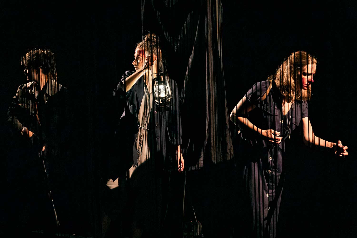 Et effectivement, l’osmose des corps et des voix est ici très travaillée pour faire transparaitre les troubles physiques et psychiques qui impactent les protagonistes de cette histoire étrange. Le charisme des comédiennes autant que le lâcher-prise des corps dans des chorégraphies proches du chamanisme captivent le spectateur et le font entrer dans l’atmosphère ésotérique de la pièce.