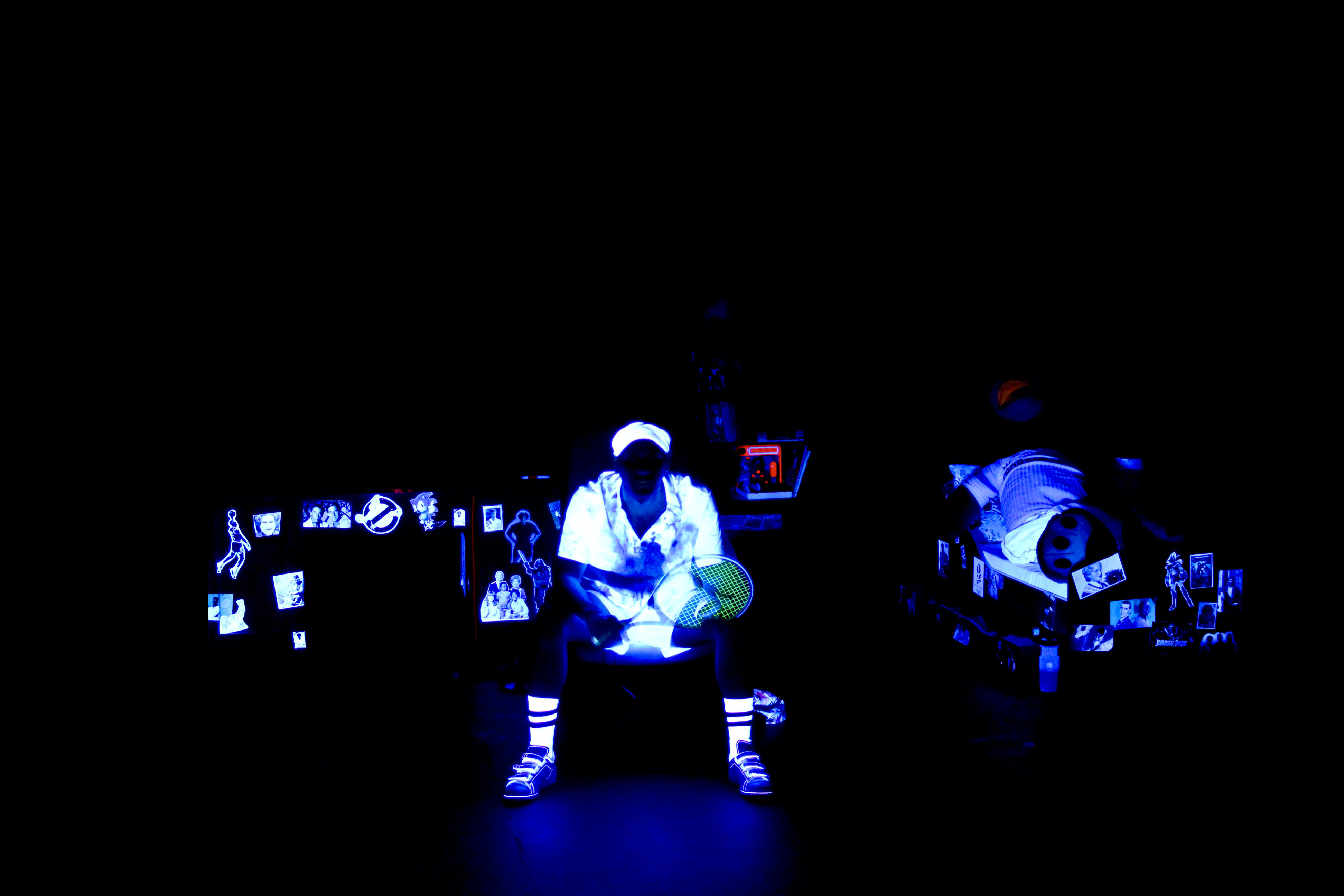 Solal Bouloudnine nous invite donc dans sa chambre ; celle d’un enfant des années 1990 : stickers, magnétophone, aquarium et peluches jonchant le sol. Le comédien à l’énergie débordante et fort d’autodérision alterne alors toutes sortes de personnages, fictionnels ou tirés de sa propre histoire. Tout comme un enfant s’amuserait à imiter les adultes qu’il croise pour essayer de saisir un peu mieux le monde dans lequel il évolue et ce qui l’a construit. Et le spectateur se plaît à s’identifer à certains d’entre eux, ou à retrouver des figures connues. Seras-tu là ? nous offre un moment intime et touchant, plein d’humour et de tendresse.