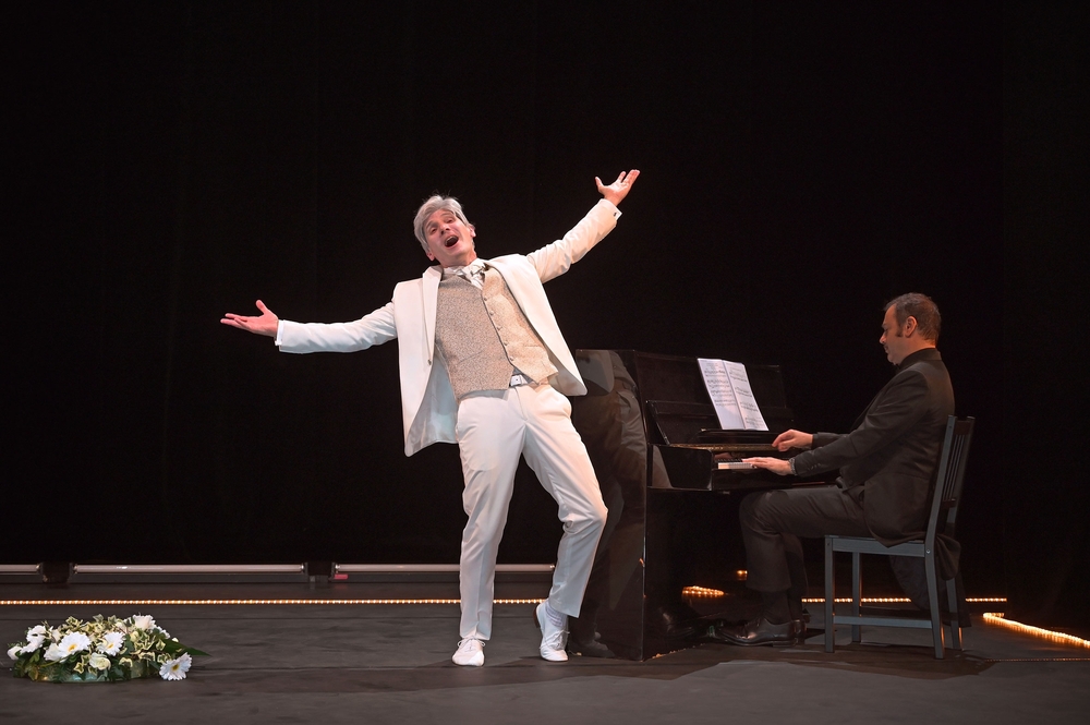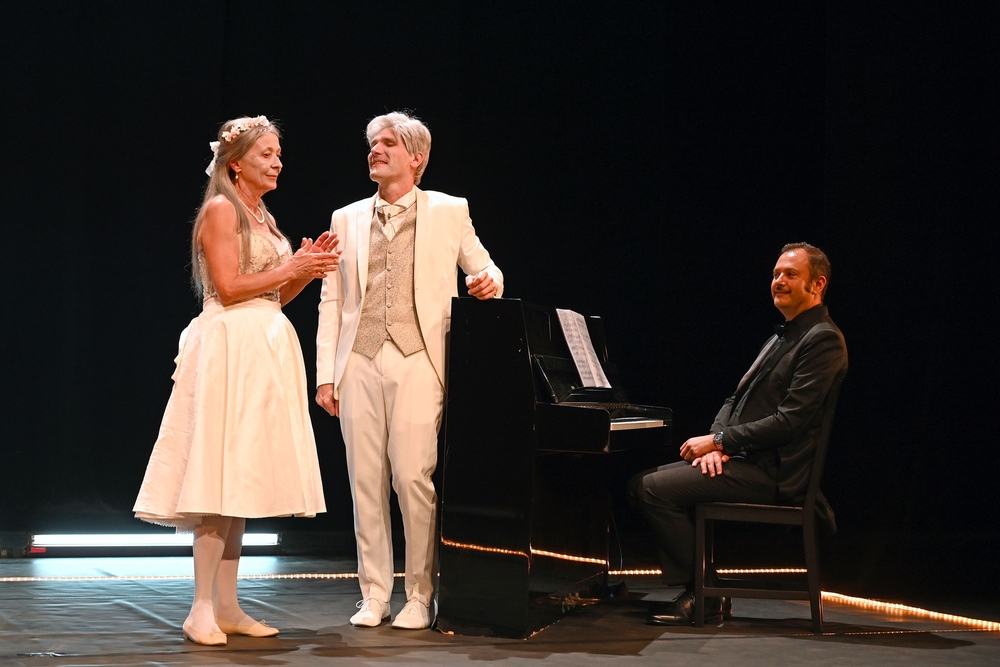Et sur ce plateau vide – quatre chaises c’est tout – se bâtit allègrement, pièces après pièces, cette maison si mal fichue et laide. Il n’y a rien et pourtant par la grâce de ses deux fantômes si drôles, Catherine Matisse et Laurent Charpentier, on traverse ces pièces et ces vies fêlées, fracassées par les années et le quotidien qui vous empoisse avec les années, émousse les sentiments. Toute cette gravité rendue si légère, mise à distance par la mort traversée. Et la poésie qui innerve ce récit, cette fable universelle comme tout récit intime. Philippe Minyana possède ce don rare du conteur, de l’écriture capable de paysager un plateau, planter un décor, sans nul artifice, de faire surgir du vide et du verbe tout un univers. Et de faire confiance à ses acteurs, choisis et complices, compagnons au long cours, qui s’emparent délicatement de ce texte avec gourmandise et le grand sérieux, la folie des fantaisistes. Un jeu d’une grande simplicité, en apparence. Mais brodé de nuances délicates et subtiles, qui vous transfigurent des portraits banals dans leurs vies étriquées, sublimés par l’écriture, auxquels on s’attache avec tendresse. Philippe Minyana écrit pour eux parce qu’ils ont cette capacité à inventer un monde à partir de son écriture si singulière, de se glisser même dans les vides de la partition proposée, jouer avec le « si magique » du théâtre et de bâtir ici une maison, traverser une existence avec le verbe en sautoir et pour tout viatique. Il n’y a rien donc que le vide propre aux apparitions, à l’attente. Mais que le pianiste présent et attentif, étrange maître de cérémonie, annonce « la cave » et nous y entrons, dans cette cave, avec le plus grands naturel, précédés par ces deux fantômes espiègles qui semblent parfois flotter au-dessus du plateau et de leur vie passée. Et c’est sans doute ça qui peut-être défini au mieux cette mise en scène, un sentiment étrange et merveilleux d’apesanteur. Une légère distance, un détachement ténu qui évite tout pathos, toute nostalgie. C’est une vie vue d’en haut, après-coup, en toute lucidité désormais, détachée de la réalité pour n’en dégager que l’expérience. Une vie vue d’en haut et qui embrasse bien plus qu’une vie. Toute une humanité.