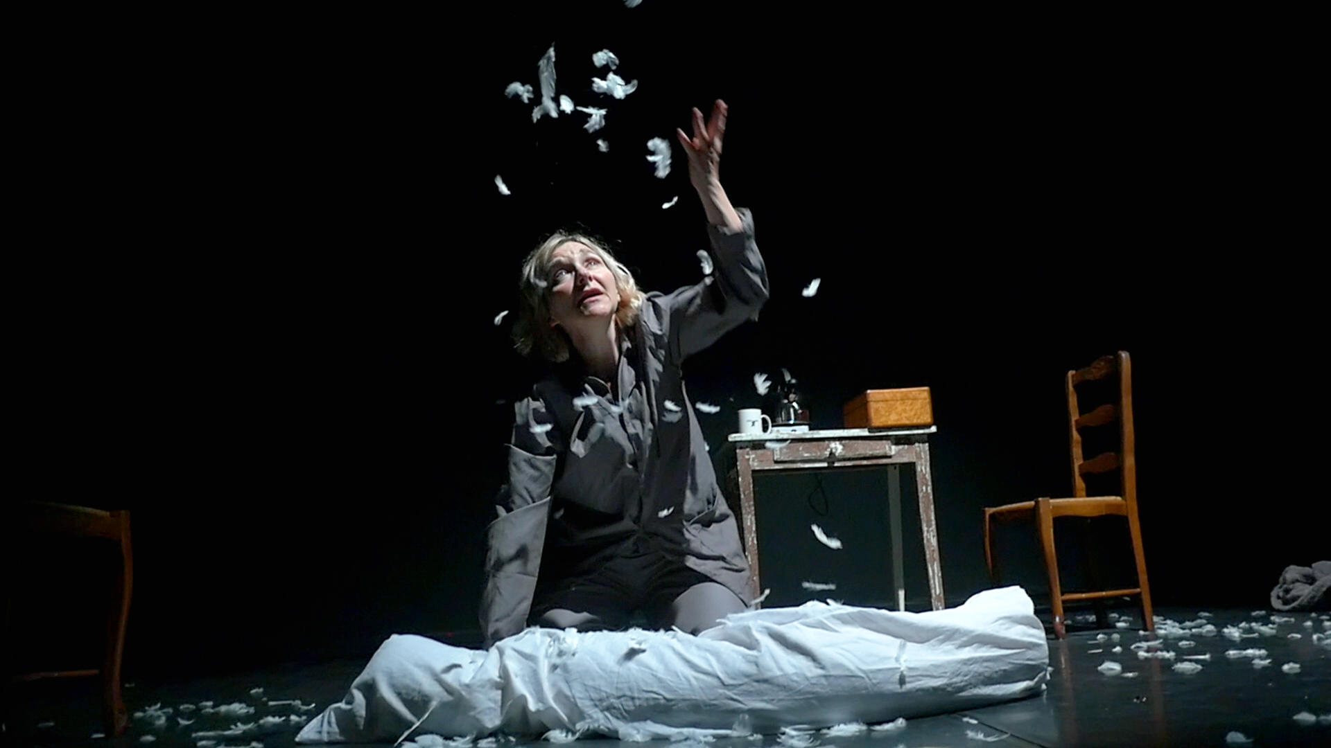 Marthe est alcoolique. A en crever. Marthe raconte sa longue descente aux enfers. Sa dépendance qui ravage tout. Ses rémissions toujours éphémères et ses échecs toujours recommencés. Ses mensonges qui deviennent sa vérité. Son incapacité à vivre, sa souffrance à vivre, sa folie de vivre. Son amour et sa haine pour son mari et ses enfants. Cette volonté, cet acharnement à vouloir les détruire, les entraîner dans sa chute malgré cet amour immense, devenu si fragile, qui ne le soutient plus, ne peut plus la soutenir. Marthe, lucide, à vif, écorchée, boit sa vie et les malheurs du monde. Ce monde qui la broie inexorablement. Frédérique Keddari-Devisme, l’auteure et metteuse en scène, s’empare avec beaucoup de tact d’un sujet tabou, la dépression et l’alcoolisme féminin. Tact, oui, pudeur et justesse. Mais sans rien cacher des ravages terrifiants d’une maladie qui emporte tout d’une vie. Rien de mélodramatique, rien de pathétique mais au contraire une écriture tenue, tendue, qui met à distance son sujet, évite tout voyeurisme vulgaire mais nous entraîne doucement, irrésistiblement dans une spirale infernale dont on ne ressort pas, comme Marthe, indemne. Une belle et forte écriture non dénuée parfois de poésie comme un baume sur des plaies ouvertes. Et la rigueur sans esbroufe de la mise en scène, sa sobriété, laisse toute la place à son interprète, Elizabeth Mazev qui s’empare de Marthe avec une vérité troublante. Une interprétation sensible, d’une grande subtilité. Marthe n’est pas un monstre, c’est un petit bout de femme effrayée par la vie qui ne peut « passer son temps, comme elle dit, à ramer sur le lac d’Aiguebelette ». Marthe est terriblement lucide. Et ce que compose là Elizabeth Mazev, comédienne d’une grande générosité, on le sait, nous bouleverse. Parce qu’elle se refuse à toute composition théâtrale, tout effet de manche, toute caricature ou boursoufflure, mais fait de son personnage une femme certes détruite par une dépendance fatale et destructrice mais d’une grande pudeur malgré cette confession qui ne cache rien de sa déchéance, de sa maladie. Elizabeth Mazev est tout entière Marthe dans ses pleins et ses déliés, ses contradictions, ses mensonges mais avec cette retenue, avant que tout ne lâche, propre à ceux qui ne veulent rien laisser paraître, rongés de l’intérieur. Tout entière dans cet humour ravageur, cet amour ravagé. Femme défaite qui se délite sous nos yeux, de défaites en échecs. Une plongée en apnée dans la folie. Et c’est cela, cette torsion, cette douleur muette, qui dévore vos tripes, bouffe votre vie, que l’on étouffe, qu’Elizabeth Mazev rend palpable sans démonstration et sans outrance, refusant la caricature. Il y a quelque chose de singulier et de puissant, de profondément juste dans cette appréhension de son personnage qui voit Elizabeth Mazev par petites touches, miracle d’une mise en scène qui ose le quotidien, la banalité, s’enfoncer dans l’aliénation, en toute conscience, glisser et renoncer sans rien faire paraître, jamais, de ce qui sourd, gronde et la happe. Elizabeth Mazev ici touche à l’indicible, à la grâce douloureuse des vrais écorchés, à leur mystère. Son récit, ce cri désespéré, qui ne demande pas d’excuses, sans complaisance, frappe et bouleverse parce qu’Elizabeth Mazev offre à Marthe une magnifique part d’humanité dans sa déchéance. Mieux même, elle ne lui retire pas même au plus profond de celle-ci. Si Marthe est assoiffée c’est bien aussi d’amour.