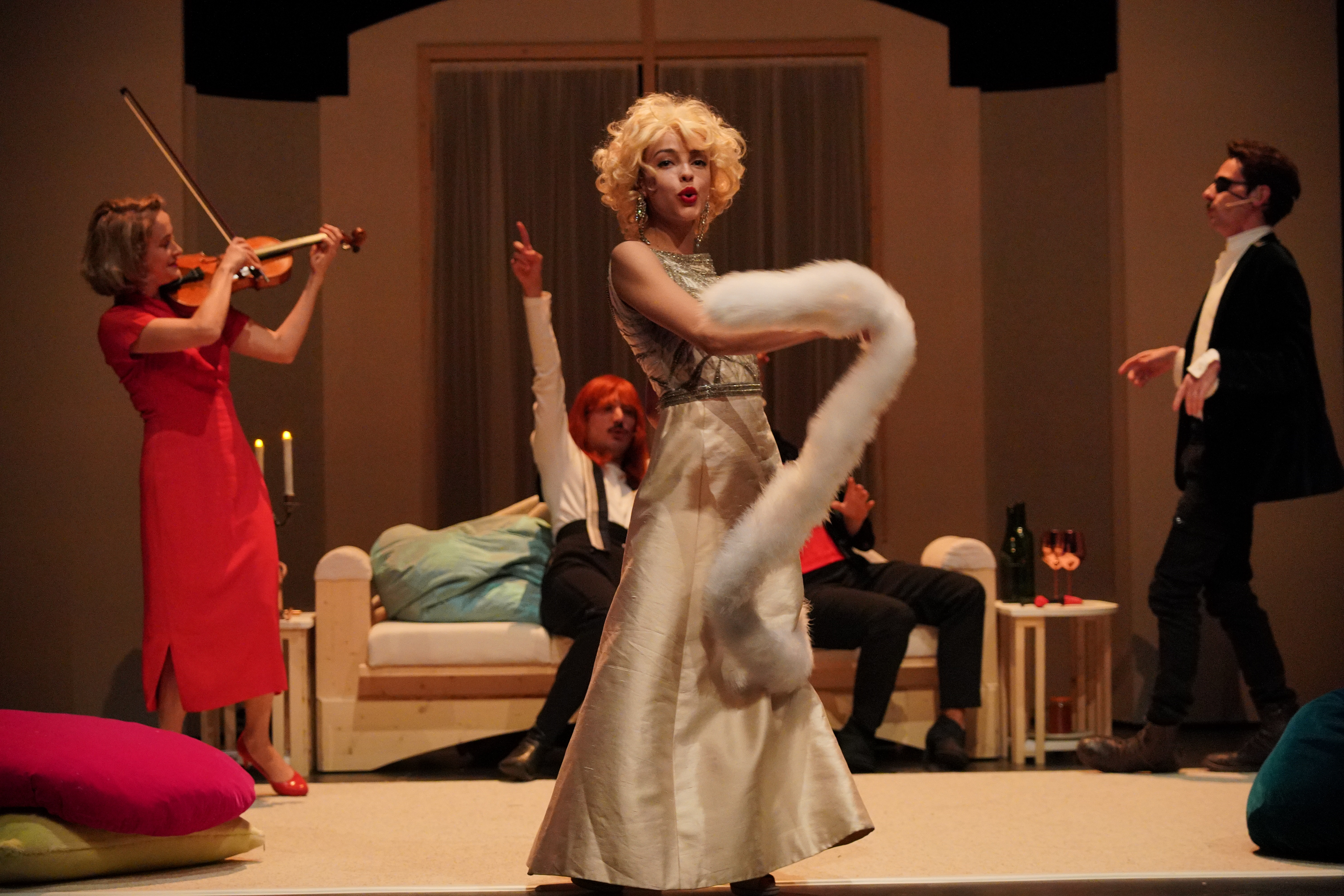 Tony Kushner met en miroir ces trois époques qui voient nos démocraties fragilisées et lentement basculer vers un autoritarisme crypto fasciste sous les coups de boutoir de crises économiques et d’un ultra-libéralisme décomplexé et triomphant qui accuse les inégalités. Ce sont les racines profondes du mal qu’il extirpe, ses rhizomes étendus, et les cécités idéologiques − ils sont communistes ou sympathisant −, la complaisance aussi, qui condamneront ici ce groupe berlinois d’abord sceptique sinon indifférent devant les évènements, hésitant à résister, avant d’en être les victimes. Le diable même est ici convoqué, qui intervient dans une scène hallucinante, dans l’hypothèse d’un pacte faustien envisagé. Nous sommes au théâtre tout y est possible. C’est aussi la dimension cabaret de cette création qui le permet, on y chante, et pour un peu on danserait sur ce volcan. Tony Kushner met en garde et, brechtien, rappelle incidemment que le ventre est encore fécond d’où surgira la bête. Cependant une photo projetée en fond de scène résume à elle seule la conclusion de ce glissement tragique et pourtant résistible. On y voit noyée au milieu d’une foule compacte, aux bras tendus uniformément dans le salut hitlérien, une petite bonne femme terrorisée, serrant contre elle son sac à main. C’est cette terreur-là, absolue, au centre d’un groupe adhérent, assujetti aux idées fascistes qui illustre sans doute le mieux le destin de ce groupe réuni dans cette nuit de décembre 1931 à 1932. Et le nôtre si nous n’y prenons pas garde. Tony Kushner fait de chacun un portrait complexe et jamais manichéen. Et Catherine Marnas visiblement s’est attachée à chacun d’eux, leur offrant la possibilité d’une partition extrêmement nuancée, tout en clair-obscur. Ils sont tous remarquables et poignants dans leur engagement ferme à défendre cette humanité en passe d’être broyée sous les bottes hitlériennes, entre résistance impossible, tentation de la compromission, la folie face à l’abjection. N’oublions pas non plus la belle énergie insolente de Zillah et l’avatar pirandellien de Tony Kushner, Xillah. Comme le fut Angels in America sept ans après cette première pièce, et comme aujourd’hui encore avec cette seconde version remaniée, Tony Kushner entre de nouveau en résistance devant le danger totalitaire qui menace et interroge frontalement notre propre capacité ou volonté à résister. Catherine Marnas s’en fait l’écho fébrile et c’est bien cette urgence et cette inquiétude qui traverse le plateau.