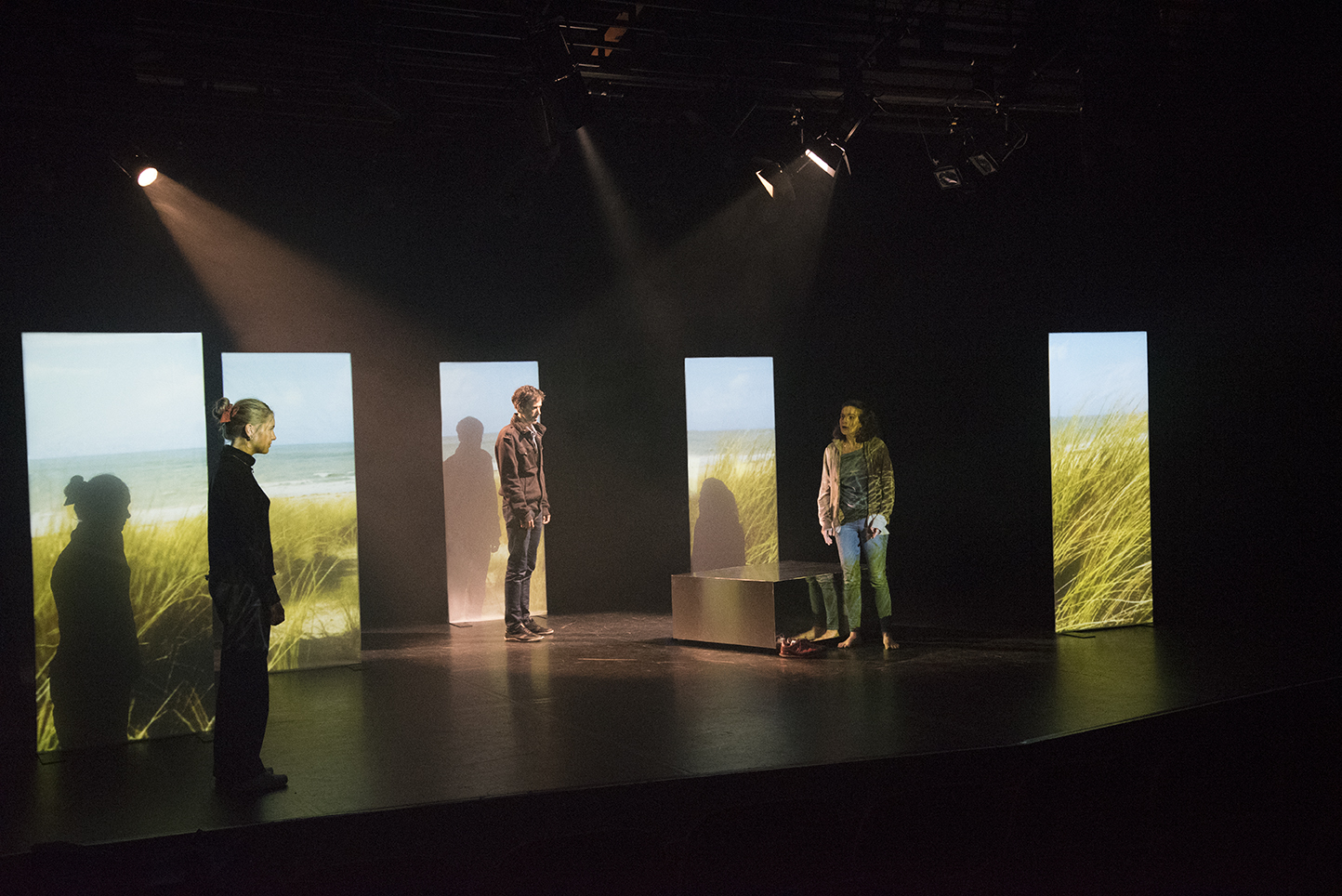 Et c’est ce jeu-là, fidèle à l’écriture, que suit la mise en scène, ce va et vient entre les êtres, ces pensées qui se croisent, ces dialogues qui vous suspendent. Un mouvement de vagues, flux et reflux, traçant chez les spectateurs comme une laisse de mer, empreintes friables, paysage de sensations mouvantes, d’émotions qui se décomposent et se recomposent au long de cette traversée du désir renaissant et de son absolu, transfiguré par la mort.