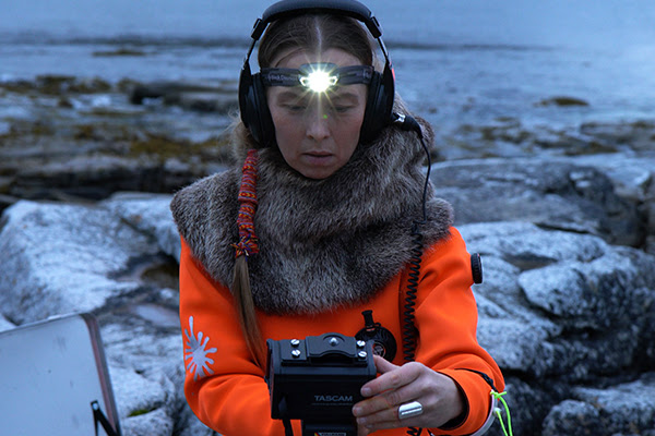 Avec une approche de chercheuse, Ursula Biemann (1955, Zurich) imagine des essais sous forme de vidéos et de textes qui explorent le lien entre la politique et l’environnement. Son dernier film, Acoustic Ocean, est une expédition dans les profondeurs de l’océan Arctique à la recherche de communications interespèces.