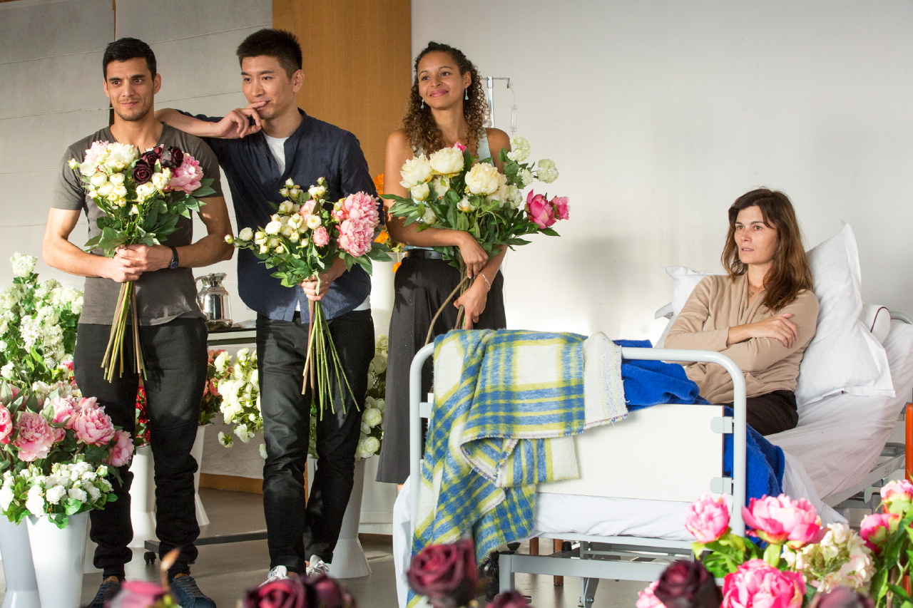La scénographie est monumentale. Des milliers de fleurs envahissent le plateau, symbolisant l’amour du public pour la comédienne. Sur scène se heurtent différents types de jeu. Jeu peu assuré des plus jeunes comédiens (sauf ceux qui justement jouent les enfants avec une force et une assurance peu communes), diction faiblarde, maniérisme et afféterie qui semblent désormais tenir lieu de style. Jeu « naturaliste » et physique pour les deux quadragénaires finlandais de la pièce. Jeu hésitant des acteurs plus âgés, dans leur texte comme dans leurs placements. La pièce hésite entre ridicule et sublime, la frontière entre les deux est d’ailleurs souvent ténue, pas seulement chez Rambert.