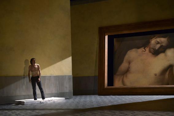 Si quelques idées de mise en scène sont peu convaincantes comme l’enjambée d’un tableau par le spectre de Sophocle ou la présence justement de ces gigantesques reproductions de détails de peintures sacrées italiennes apposées sur le mur du fond, le travail de Nordey reste magistral dans la précision et la transmission du texte. On sent le respect qu’il a pour l’auteur et son envie de faire partager sa langue. La direction des comédiens va également dans ce sens ; ce qui amène une certaine distance dans le jeu mais permet le rayonnement poétique.