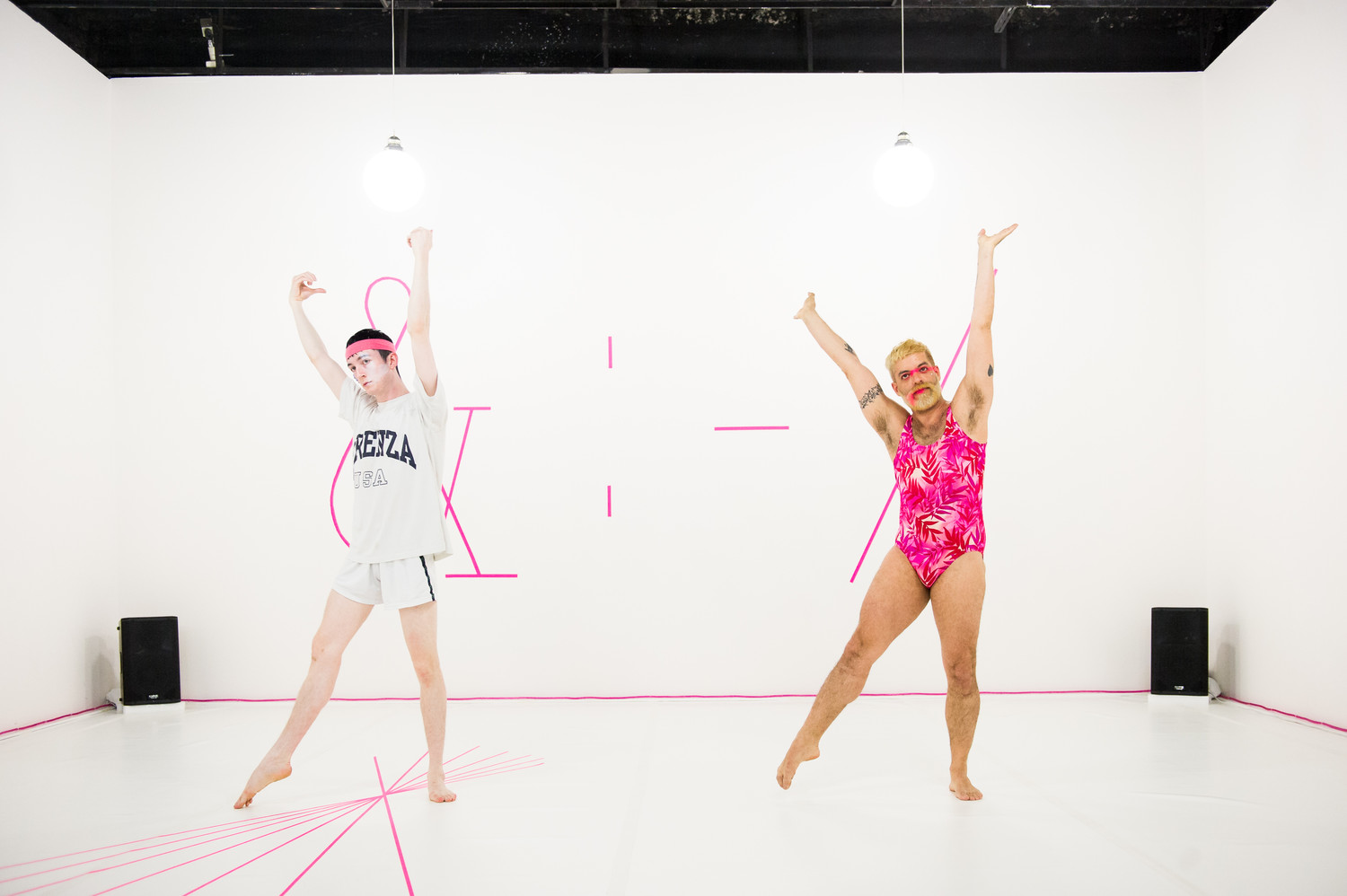 Miguel Gutturiez, suite. Sous le vernis à ongles rose flashy, le noir. Une performance chorégraphique, poétique, philosophique où s’affirme une autre façon d’être, une réappropriation de soi. Un manifeste queer aussi joyeux que poignant, aussi drôle qu’angoissant. Premier volet de la trilogie Age & Beauty, Mid-carrer Artist / Suicide Note or &:-/ interroge le temps. Celui qui passe et qui ravage, qui épuise, mais également le temps de la création. Ils sont deux sur le plateau nu et blanc, Miguel Gutturiez, bear poilu en maillot de bain rose à grands ramages, et Mickey Mahar, menu et longiligne en short et T-shirt. L’artiste au mitan de sa vie et son jeune alter ego. C’est une danse frénétique qui brasse tous les styles de la culture queer, celle du clubbing et du fitness, du défilé de drag-queen, du porno, du vogging, postures et gestes identitaires, mais désarticulés et mis à nu, désossés, dépouillés de leurs contextes, rehaussés et subtilement réhabilités. Michel Gutturiez ne caricature pas, il sublime et cristallise une culture, une esthétique queer qui est aussi une identité, un manifeste artistique et ajoutons violemment politique. Etrange mixte en réalité que ce bout à bout d’attitudes identitaires, de codes reconnaissables entre tous, souvent moqués, mais métamorphosés en un brillant poème chorégraphique qui tourne en boucle, vrille sur lui-même, se répète en combinant moult variations et conduit à l’épuisement. Epuisement des corps qui finissent bientôt par se lâcher pour terminer provisoirement en un étrange et drolatique état borderline qui rompt brutalement avec la maîtrise jusque-là affichée. Un provisoire foutoir apparent, une performance limite, qui ne fait que montrer l’envers aussi d’une straight attitude, d’un travestissement, d’un affichage volontaire et crâne parfois trompeur. Deux états complémentaires voire indissociables. Ce temps de la danse c’est la métaphore du « temps queer » et de la création. Un temps partagé entre la répétition lancinante et sa dérégulation. C’est aussi comme il le chante, « les conséquences de l’âge et de la beauté ». Réflexion salutaire et lucide dans un milieu ou le jeunisme et le paraître font des ravages. Car il y a bien là derrière le fard rose et les ongles peints une réflexion mélancolique sur le temps qui exclue et qui assèche. Miguel Gutturiez  le sait qui affirme par anticipation « ça ne fonctionne plus ». C’est cette question qui traverse en filigrane cette performance bien plus grave qu’elle ne paraît. Ce qui vaut pour l’art vaut ici pour la vie, le sexe et l’identité. Les trois devenus matière vivante et fragile de performances engagées, de remises en question.