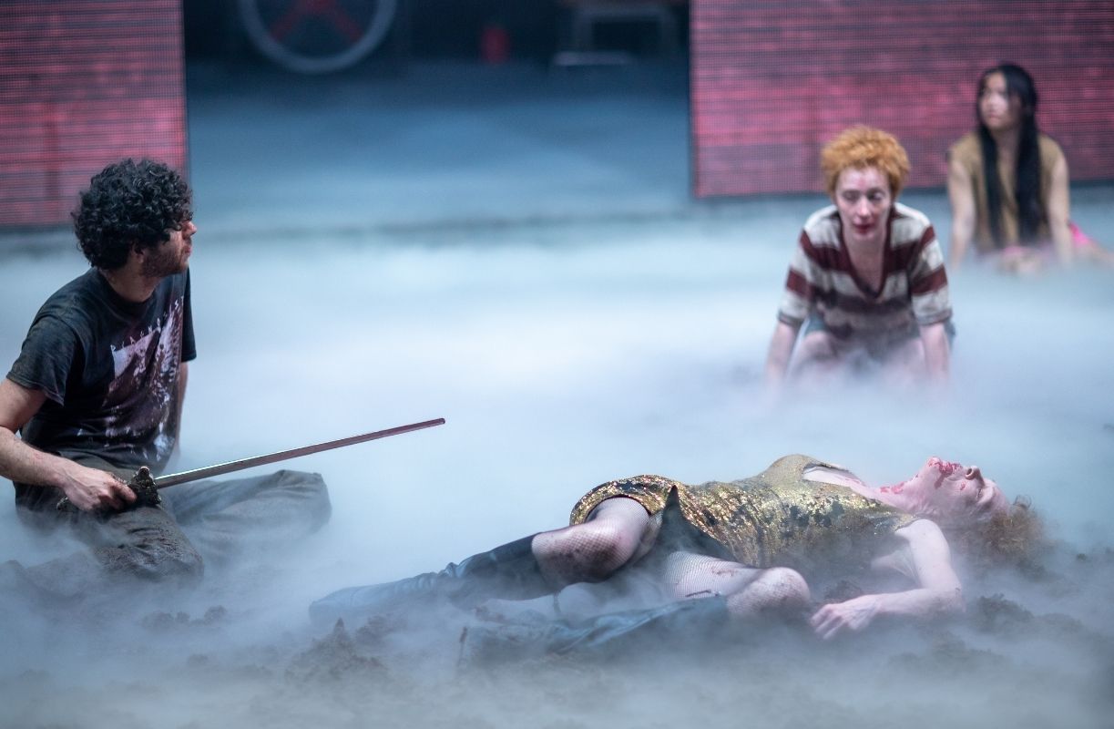 L’origine de la violence. Ivo Van Hove interroge Euripide et Eschyle et plonge aux racines profondes du mal qui ronge notre humanité. La malédiction des Atrides, représailles cinglantes au défi lancé aux dieux par Tantale leur offrant son propre fils comme repas, en préambule. Et c’est une odeur âcre de chair brûlée pour un autre repas qui accueille les spectateurs ; Atrée, petit-fils de Tantale, est aux fourneaux, dépeçant les enfants de son frère Thyeste qui lui seront servis comme plat principal au dîner signant ainsi la malédiction de Thyeste sur Atrée et sa descendance, les Atrides. Voilà le premier acte de la catastrophe qui fige cette famille dans la haine, voit Agamemnon, fils d’Atrée, en partance pour Troie sacrifier sa fille Iphigénie pour l’intérêt de la Grèce, Clytemnestre venger le sacrifice d’Iphigénie en tuant l’époux infanticide, Electre et Oreste, leurs enfants exilés, venger le père en assassinant leur mère et son amant Egisthe. Ajoutons la vengeance d’Hécube, reine déchue de Troie, et le destin de sa fille Cassandre donnée en butin à Agamemnon… Pour qui ne suivrait pas, la généalogie et l’action sont résumées, projetées sur les murs au fil de l’action. De ce déchaînement de violence et de meurtres légitimés, de vengeance sourde et aveugle à la raison, de tragédie brutale et sèche, spirale de violence inouïe et sidérante qui aspire aux enfers chacun des personnages marqués du sceau vengeur d’Apollon, Ivo Van Hove ne fait qu’un seul et même récit, une seule geste. Infanticide, matricide et parricide, le déclin et l’éradication d’une famille cristallisée par la haine, c’est un engrenage fatal et irrépressible sous fond de guerre de Troie qu’Ivo Van Hove met en scène dans un dénuement absolu, une beauté des images, bluffantes par leur radicale simplicité, leur cruelle clarté. Mise en scène aride, sèche et dépouillée de tout artifice, toute entière tournée vers ses personnages écorchés vivants et saignés à blanc avant de rejoindre les Enfers. C’est un équarrissage en règle où les personnages sont dépecés, les nerfs mis à vifs, fouaillés au plus profond. Ivo Van Hove taille, dégraisse et racle jusqu’à l’os, extrait le suc de cette tragédie de sang et de boue, les mécanismes de la violence, la source de toute radicalisation, cette bascule brutale dans la barbarie, légitimé par un objectif supérieur et la conviction chevillée du seul moyen de changer le monde… Iphigénie, Les Troyennes, Agamemnon, Electre, Oreste, réunis sous le titre d’Age of Rage, c’est aussi notre tragédie contemporaine qui acte pour aujourd’hui et demain notre humanité en souffrance. Ivo Van Hove ne donnant volontairement aucune prise, il n’y a pas d’émotion mais une sidération devant l’enchaînement inéluctable et la brutalité des faits. Victimes ou bourreaux, tous déterminés par les dieux, il y a quelque chose d’implacable et de résolu en chacun qui désamorce toute empathie et que souligne la mise en scène implosive plus qu’explosive et une direction d’acteur qui privilégie à la démonstration l’intériorité. Tous, jeunes pour l’ensemble, remarquables, donnant à leur rôle une épaisseur, une densité sans débordement. Il y a dans leur personnage comme un renoncement, l’acceptation d’un destin soumis à la volonté des dieux. Ivo Van Hove à vrai dire ne s’attarde pas, va vite, accélère le mouvement. Ce qui semble importer ce sont les faits, leurs origines et leurs conséquences dramatiques. C’est une transe tribale collective, vertigineuse, celle-là même qui saisit parfois les protagonistes et le chœur comme pris soudain d’une fureur exutoire au rythme d’une musique qui les possède et ne les lâche plus. Et dans cette interrogation initiale sur l’origine de la violence, des enfants sacrifiés aux passions des adultes, Ivo Van Hove projette soudain la tragédie dans le présent. L’intervention finale d’Apollon levant la malédiction n’est ici pour lui qu’une convention dramaturgique qui n’arrête en rien le déchaînement de cette violence qui perdure aujourd’hui. La dernière image en ce sens est une conclusion sans appel.