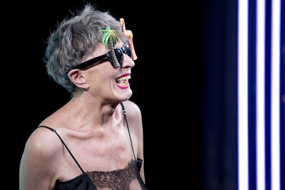 Sortir d’une représentation émue, chamboulé parce que le théâtre vous offre soudain une part d’humanité bouleversante, une leçon de liberté joyeuse, une émancipation frondeuse. Et quand cela est joué par une de nos plus grande actrice, aussi à l’aise dans le déjanté le plus fou que dans la tragédie la plus noire, Claude Degliame, on ne sort pas vraiment indemne de la salle Roland Topor où le destin, la vie Aglaé nous est contée avec autant de talent, de classe et d’irrévérence crue. Aglaé, 70 ans, vieille pute et non salope comme elle le précise. Car cela n’a évidemment rien à voir. Et vieille est désormais sa spécialité puisqu’elle travaille encore. Vieille après avoir été dominatrice SM. Elle a tout vécu Aglaé, le trottoir, les palaces, le bois et l’avenue Foch, Paris et aujourd’hui Marseille. Les macs et les flics. Et la taule, un peu. Tout vécu avec ses hauts et ses bas. Et tout vu, observé avec acuité. Cultivée avec ça. Elle a lu, beaucoup. De Freud à d’Ormesson et Simenon. Forte désormais et heureuse d’une liberté acquise par ce foutu métier qui lui a explosé les pieds, les talons ne pardonnant pas, Aglaé fustige l’hypocrisie d’une société qui condamne par préjugés et certitudes imbéciles. Tape sur les lois qui entravent, criminalisent son métier. Aglaé remet les pendules à l’heure sur le sexe et sa pratique, son commerce. Et notre grande tartufferie sur la chose. C’est cru certes mais jamais vulgaire. Une bite est une bite, point. Aglaé s’expose sans fard, sans tricher, elle qui, volontairement, a choisi ce métier. Faite pour ça assène-t-elle. Toujours mieux que d’être caissière. Lucide Aglaé. Non sans humour. Claude Degliame donc, mise en scène par Jean-Michel Rabeux. Un couple infernal pour une création qui renverse, met cul par-dessus tête les valeurs morales qui reviennent au galop en ces temps de puritains revenus. Dans la petite salle Roland Topor transformé en cabaret, Claude Degliame, en combinaison de soie noire à dentelles et lunettes de soleil extravagantes déambule, comme ici chez elle, impériale. Exposée au plus près. Cette proximité immédiate, ce contact brut et physique, donne une force inouïe à ce récit, ce témoignage. Pas de distanciation possible. Plus que spectateurs ou témoins, confidents de la dame comme le furent Jean-Michel Rabeux et Claude Degliame. Cette dernière, magistrale, dirigée au cordeau se glisse avec aisance dans la peau d’Aglaé et déroule ce récit avec une classe folle, celle d’une pute qui ne s’en compte pas, directe et sans façon. Sans effet, sans clichés, mais avec un sacré relief et beaucoup de subtilité. Pas plus pute que vous et moi mais femme effrontément libre. Et plus encore car ici et là quelques fêlures ouvrent sur une vérité enfouie. Bravache et libre, mais à quel prix ? Cette liberté-là a son coût. Et puis à un certain moment, il y a un silence soudain. Un long silence. Et ce qui ne s’exprime pas brutalement, ce qui surgit là, ce qui traverse le visage et le corps – il faudrait en parler de ce corps offert, à nu – de Claude Degliame vous cloue sur votre tabouret vous fait frissonner parce que s’y engouffre une vérité qui n’appartient qu’à Aglaé et qui ne nous est pas donné. Ce mystère Claude Degliame le préserve avec soin offrant à Aglaé un poids d’humanité formidable. Et c’est cela qui est magnifique c’est que désamorçant tout débat, ce n’est pas la pute que l’on découvre, même si elle répète à l’envie ce terme comme une provocation joyeuse, mais la femme maîtresse de son destin et de ses coups, cette différence qui fait d’elle un être en marge, au regard des lois et de la société dont elle se contrefout, mais au plus près d’une vérité de vie débarrassée de tous jugements et préjugés. En cela Aglaé est libre et nous libère nous aussi de tous jugements. Claude Degliame et Jean-Michel Rabeux désamorcent avec bonheur la provocation pour avec justesse et rude délicatesse offrir le portrait d’une femme exemplaire, à prendre en exemple oui et le théâtre est là pour ça et en cela la parole d’Aglaé devient politique. Et comme le précise Jean-Michel Rabeux, celui d’une « (…) grande, très grande personne (…)».