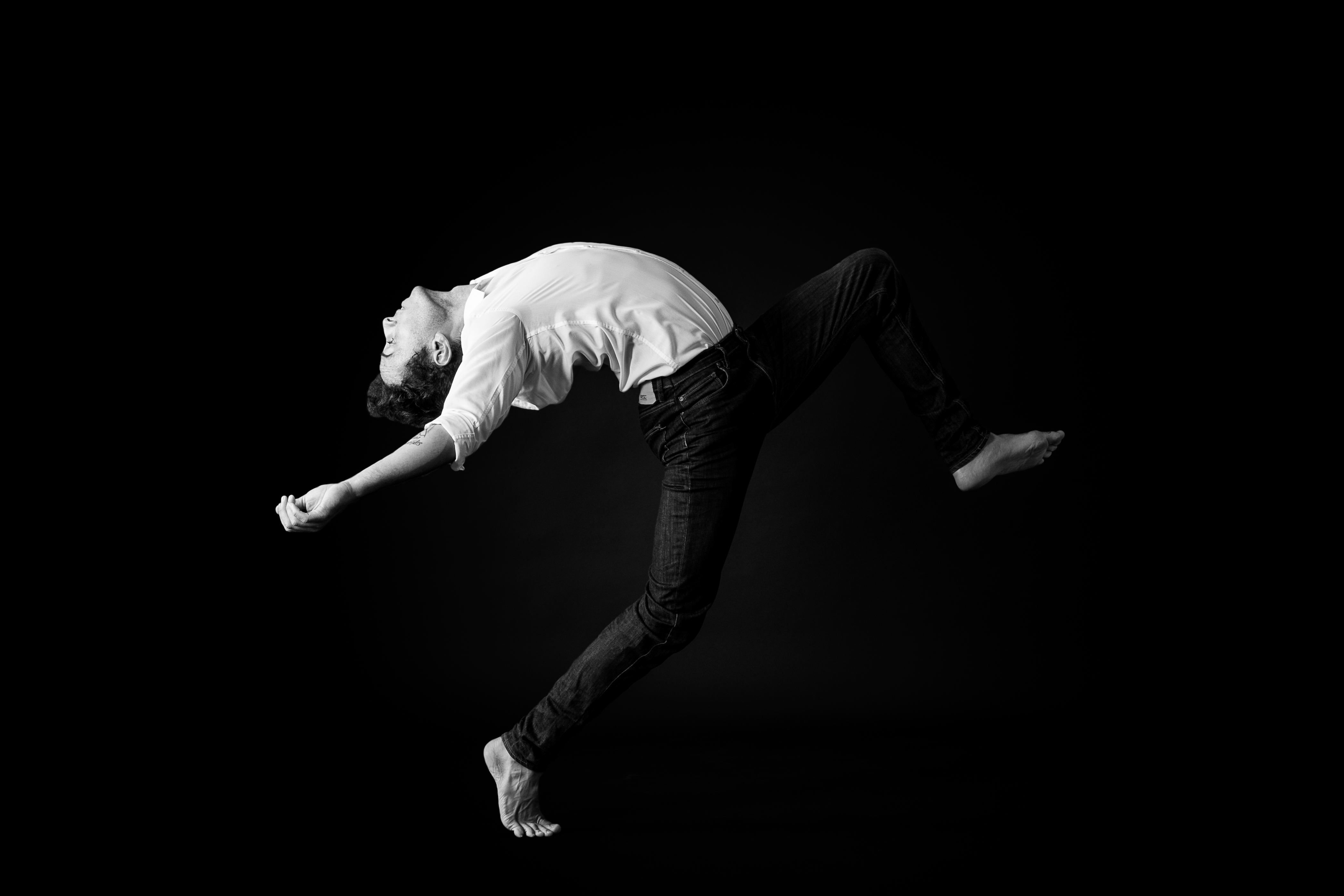 La première partie de ce dytique nous présente un solo conçu et interprété par Chey Jurado, danseur talentueux et célèbre dans les compétitions de danse urbaine. Agua est une étude chorégraphique autour de l’eau dans tous ses états. Cet élément, on l’observe dans cette pièce, a inspiré la dramaturgie de son solo, et a sensiblement influencé les mouvements et les qualités de corps dans son écriture. En utilisant le principe contrasté du popping et du locking, cher au hip hop, il le relie au divers formes et rythme de l’eau. De la flaque stagnante, aux remues puissantes des torrents il passe par une variation d’états, dont l’éclectisme nous dévoile une mélodie corporelle fait de contraste et de retournements. Son écriture chorégraphique est d’une difficulté technique peu commune. Pourtant il ce jeune artiste ne manque pas de technique, il la transcende même en nous donnant l’impression d’une facilité insolente par la fluidité d’enchainements complexe qu’il s’amuse à décliner sous nos yeux. On remarque soudain comment une dissociation entre son visage et son corps ondulant de saccades marque une certaine distance entre l’homme et l’élément, la pensée et le corps, le danseur et la danse. Sa manière de se mouvoir est unique. Elle semble habiter des champs fluidiques abscons, convoquer des imaginaire lointains et primitifs. Il est littéralement traversé par quelque chose d’imperceptible, comme un secret. Il ne danse pas, mais est dansé par ce mystère.