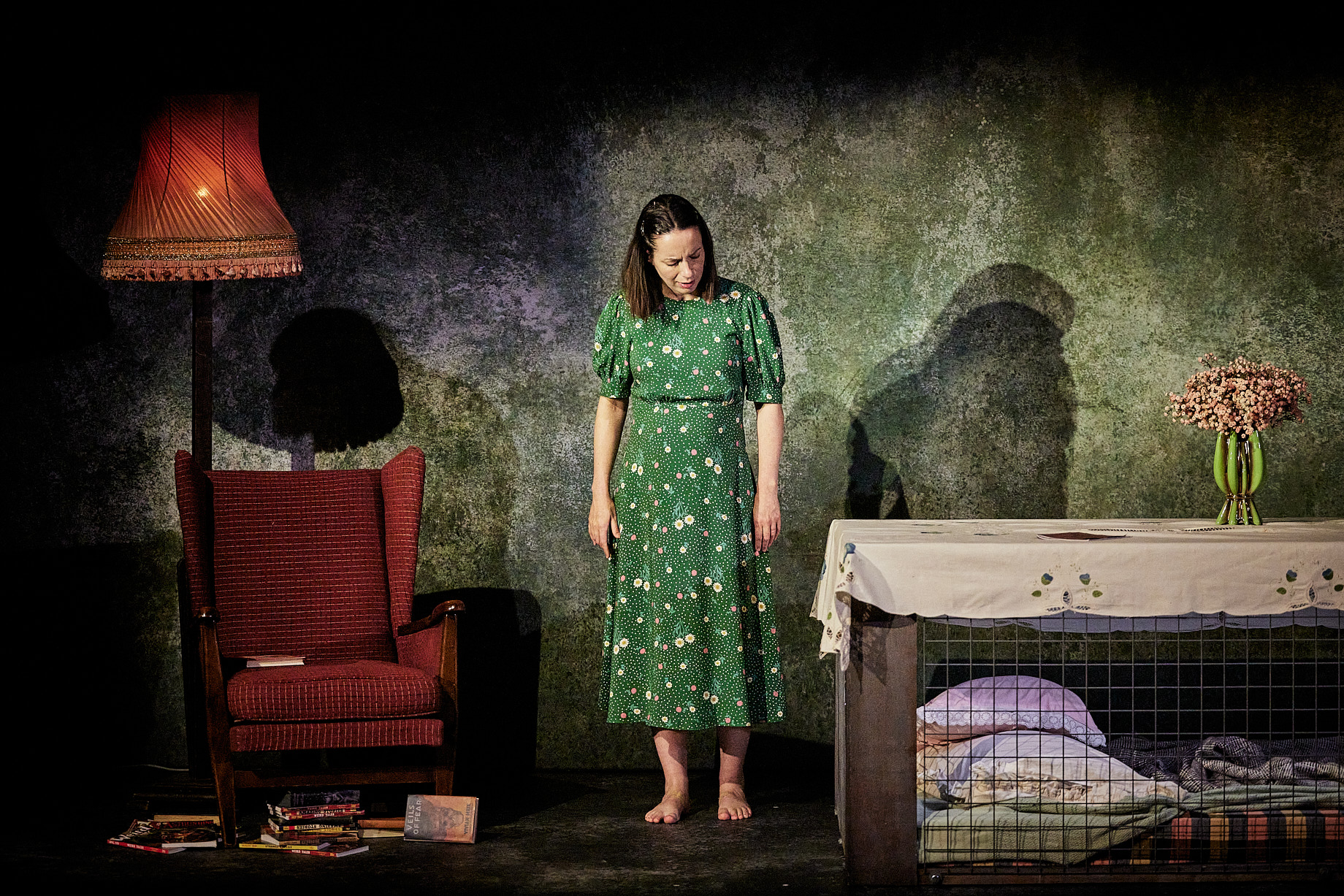 Dans un premier décor, consistant en un fauteuil rouge et lampadaire à jardin et un étrange lit-cage recouvert d’une nappe et d’un bouquet de fleurs dans un espace réduit par trois murs étouffants recouverts d’un revêtement moucheté tirant dans les verts et les gris, Kate O’Flynn dans une robe verte à fleurs qui s’accorde avec le fond, s’adresse à son père (veuf) dans un dialogue fictif oppressant angoissant, en donnant l’impression d’inventer des histoires dans le seul but d’échapper à l’angoisse des bombardements. Northleigh, 1940 est une plongée pour l’auteur dans son univers familial de Manchester de l’époque de la seconde guerre mondiale, mais qui a quelque chose d’universel dans l’affrontement du quotidien à une peur individuelle qui agit en miroir avec un collectif qui la dépasse.