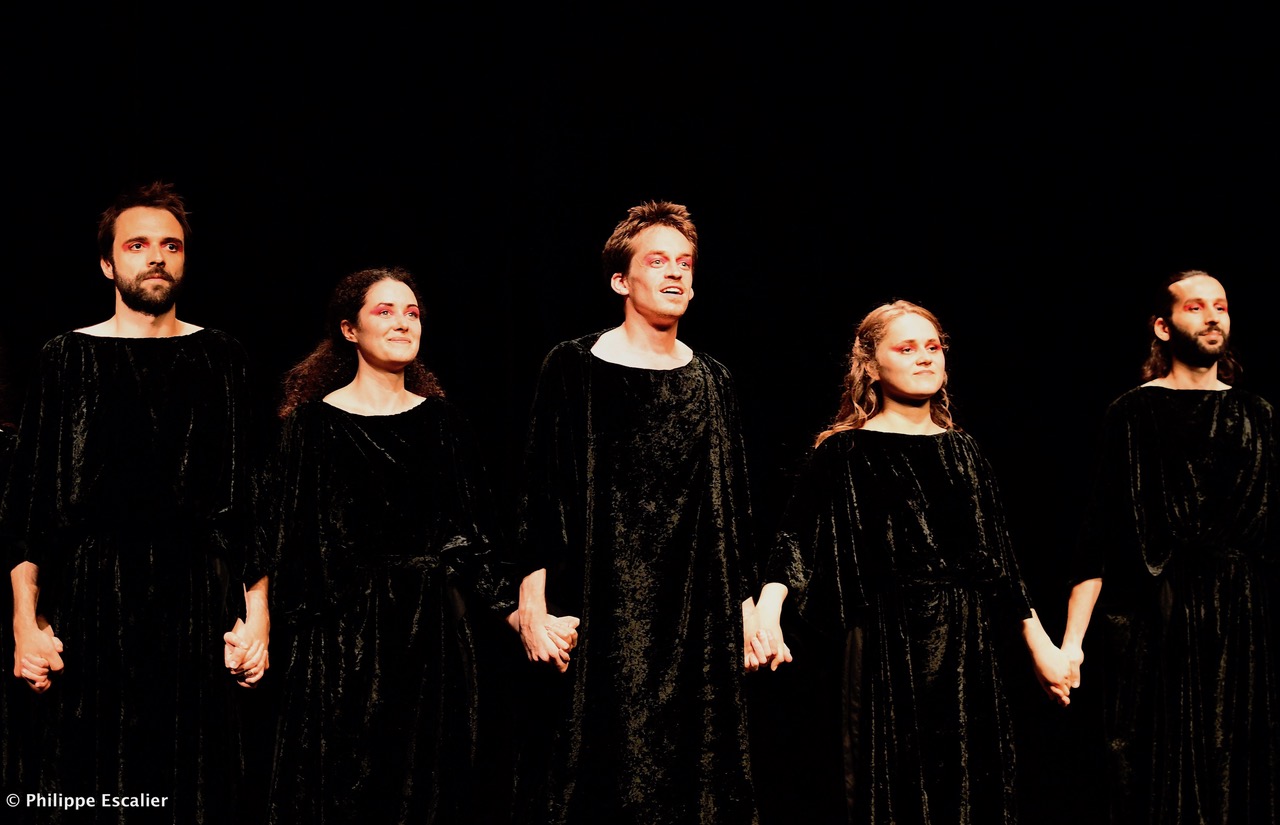 Dans le studio rénové et flambant neuf du Studio Marigny, Michaël Denard a présenté sa première mise en scène. L’on reconnaîtra la patte de l’ancien danseur étoile de l’American Ballet dans la beauté de la gestuelle, la sobriété des costumes (tous identiques) et les mouvements amples, souvent circulaires, qu’il propose à ses acteurs avec un final qui soude la troupe en un anneau resserré pouvant faire penser au chœur dans la tragédie grecque. La proposition est donc résolument moderne, allégée, ponctuée de quelques petites audaces ne remettant pas en cause la beauté majestueuse des alexandrins. Les comédiens entrent et sortent de scène le plus souvent en courant à la façon des danseurs. C’est donc bien et cela n’étonnera personne à une mise en scène (très) partiellement chorégraphiée que Michaël Denard nous convie. Aucun artifice, aucun décor, le texte et l’acteur seulement. Et un besoin de rendre ce drame le plus humain possible. Défendre cette vision en s’entourant d’une très jeune troupe, venue des Cours Acquaviva, à l’exception d’une élève des Cours Simon, était tout sauf illogique. Le pari était, l’on s’en doute, risqué, au final, il est gagné ! Les puristes trouveront toujours des petits défauts, la première, du reste, n’en était pas exempte. Ce serait oublier à quel point la déclamation est un art difficile. Et, pour notre part, nous préférons voir l’énergie, la conviction et le talent qui se déploient sur scène au service de ce texte intemporel qu’il est fort plaisant de redécouvrir sous cet angle nouveau et dans une distribution aussi homogène que prometteuse. Les amoureux du théâtre classique auront donc tout pour être heureux !