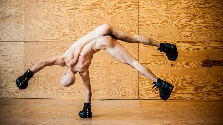 Surnommé « Aneckxander », Alexander au long cou, au corps fascinant, monstrueusement-angélique, propose pour le Festival Actoral de l’Usine C une performance rare est absolument époustouflante. Il s’agit d’une étude sur le corps humain. Un corps ici atypique, capable de se tordre, de se désarticuler, de se condenser à l’extrême, nous donnant le sentiment que la chair pourrait prendre la qualité d’une matière comme le gaz, le caoutchouc ou encore le diamant brute. Le sentiment qui guette constamment le spectacle admirant cette acrobate de génie, est de l’ordre d’une hallucination totale. On a de la peine à croire les prouesses qui se déroulent sous nous yeux, qui sont pourtant bien réelles est bien incarnées. Réelles car il s’agit de performance, où l’illusion théâtrale et la bonne veille machine fabulatrice n’ont pas leur place au plateau. Où contemple une nudité bien réelle, qui se heurte dans le mouvement, qui fait choc et joue à la fois avec nos craintes et notre désir malsain de violence. Il y a quelque chose de tragiquement drôle dans ce corps qui se cherche, qui vient découvrir autant ses possibilités multiples et hors du commun que ses limites, qui viennent bousculer et couper net le mouvement de virtuosité. Pourtant les limites sont à prendre à une échelle qui ne sont en aucun cas celles de l’homme, tant ce qu’accomplit Alexander Vantournhout appartient à une sphère que nous ne connaissons pas et que nous avons plaisir à venir découvrir. Nous parlerons de sa présence très forte au plateau, de ses regards enfantins et touchants adressés un à un au public comme autant d’amis bienveillants, de sa qualité de corps à la fois animale, rebelle à la gravité, de ce corps sculptural qu’il métamorphose comme une peinture de Francis Bacon. Au cours du spectacle certain objets, plaqués ici comme des prothèses, viennent habiller la nudité pour ajouter une dimension monstrueuse et contraignante à la performance. Sur une musique enregistrée en temps réelle sur un piano électrique, Alexander réalisera à plusieurs reprises une variation de mouvements complexes dont les motifs accentuent la tension au fil de ces prothèses qu’il se rajoute et s’impose dans la répétition. Un Sisyphe contemporain qui s’essouffle sous le poids des choses et qui continue de nous heurter profondément. Une proposition radicale qui laisse le spectateur bouche bée par la beauté qui lui fait face, comme dans combat où dès le premier regard nous savons que nous sommes pris.