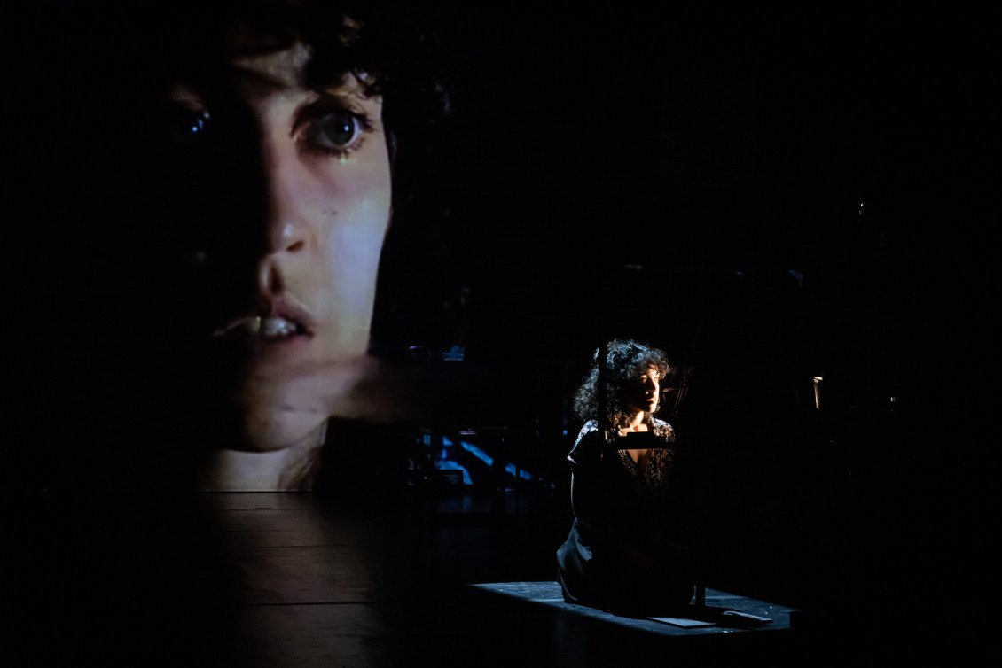 Musiciens dont le geste sera suspendu d’entrée de jeu par une Valérie Dréville, magistrale, au service du texte sidérant de Kae Tempest. Tirésias. Que c’est beau ce suspens dans lequel s’engouffre la parole de la comédienne, comme une brèche dans le temps ! Rarement instant de théâtre aura paru plus juste. Qu’elle est belle Valérie Dréville, que l’on sent en travail de bout en bout, accouchant de ces vérités nouvelles que seule la poésie peut arracher en quelques mots ! Elle est multiple, elle est entière, elle est là et ailleurs. Elle est debout devant ces tables transparentes, où les images se forment, se superposent, s’abîment, s’écoulent, telles l’établi du devin. On n’est pas prêt d’oublier ses longs bras tels des serpents s’accouplant, et ce visage se putréfiant sous les assauts du temps. La parole irréductible de Kae Tempest ne pouvait pas trouver plus légitime profératrice. L’intelligence de Guy Cassiers travaillant à la polysémie et à l’ouverture des sens et du sens ne pouvait pas trouver plus bouleversant.e aut.eur.rice.