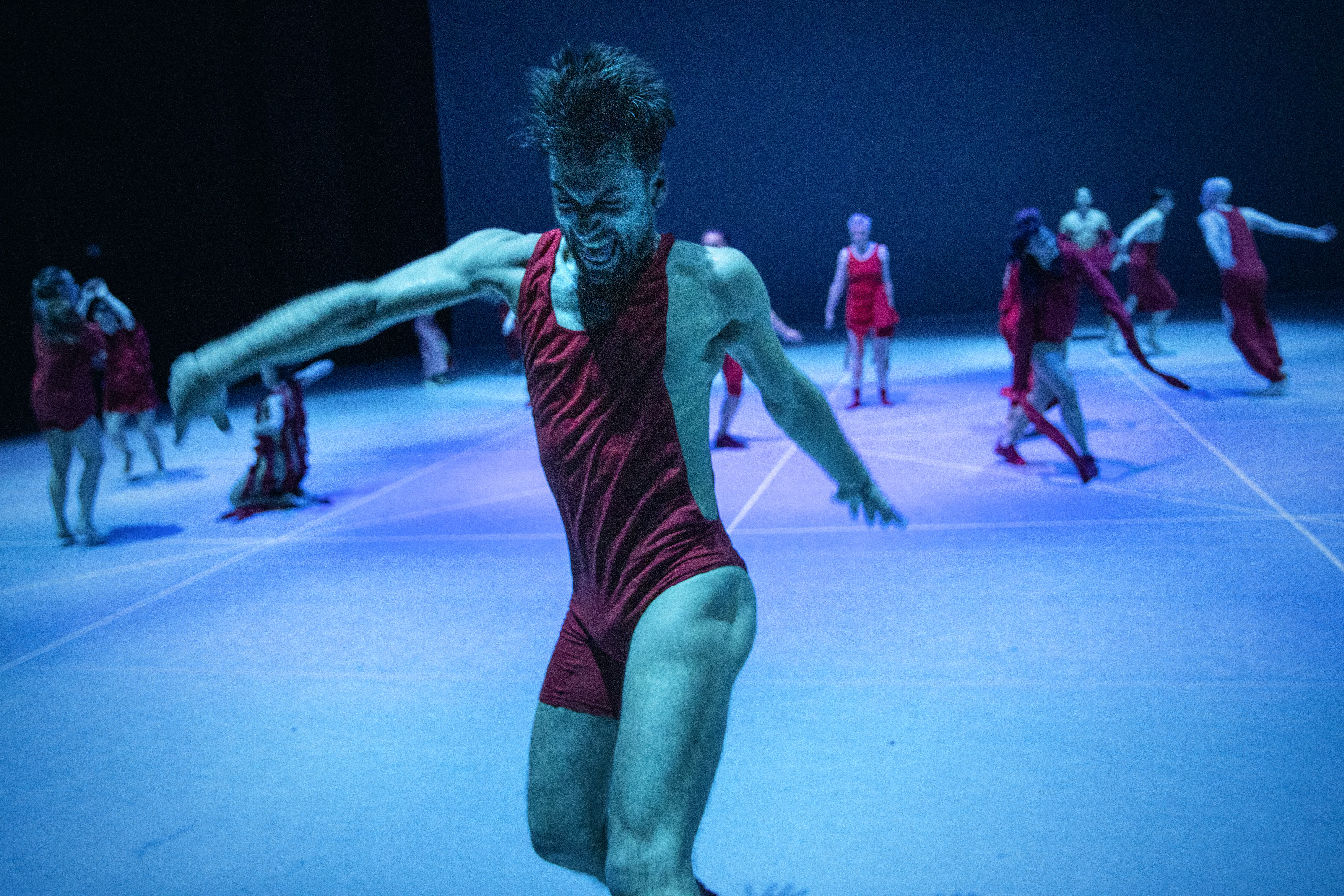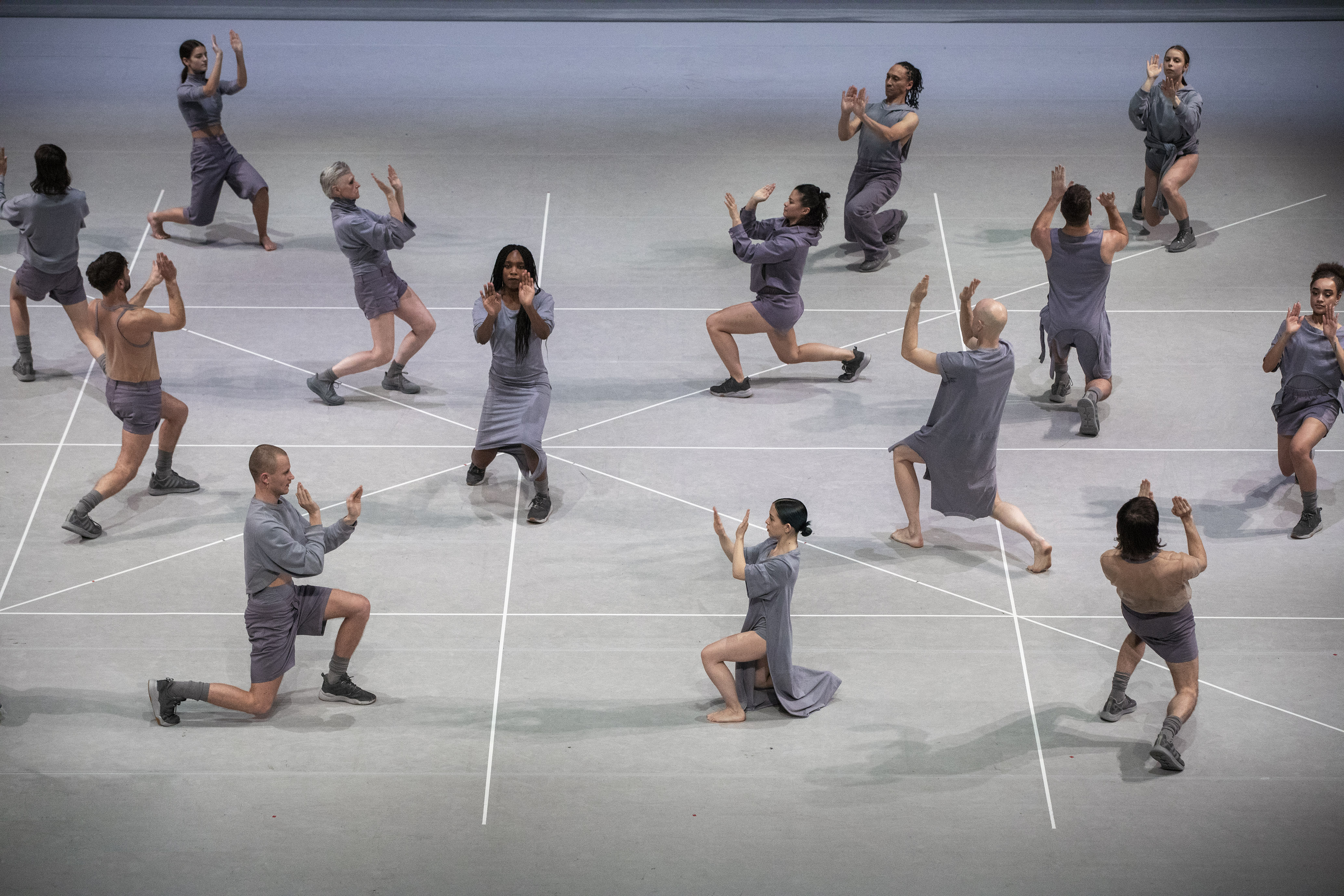 Un spectacle étonnant. Du bon et du moins bien. Fabuleux chassé-croisé. L’impression que des poupées folles font la fête dans une malle gigantesque. Voici les quelques impressions qu’Any attempt will end in crushed bodies and shattered bones (« Toute tentative sera soldée par des os et des corps broyés » faisant référence à Xi Jinping face à des manifestants hongkongais) pourrait laisser, ou laisse. Une foule de danseurs, de danseuses, de tous les âges, va fabriquer du présent et de l’absent dans une union forte. Les corps au sol, les corps debout, les âges, les tailles, les volumes. Des corps, juste là, tout près, vont et viennent, se croisent, élaborent des lignes, cercles et aléas subtiles et exposés sous une musique hachée, redondante, qui aime s’achever d’une façon nette qui pourrait faire croire à une « fin » mais non. Tout reprend, les corps se suivent, se croisent sans pour le moins abîmer ces rondes enchevêtrées.