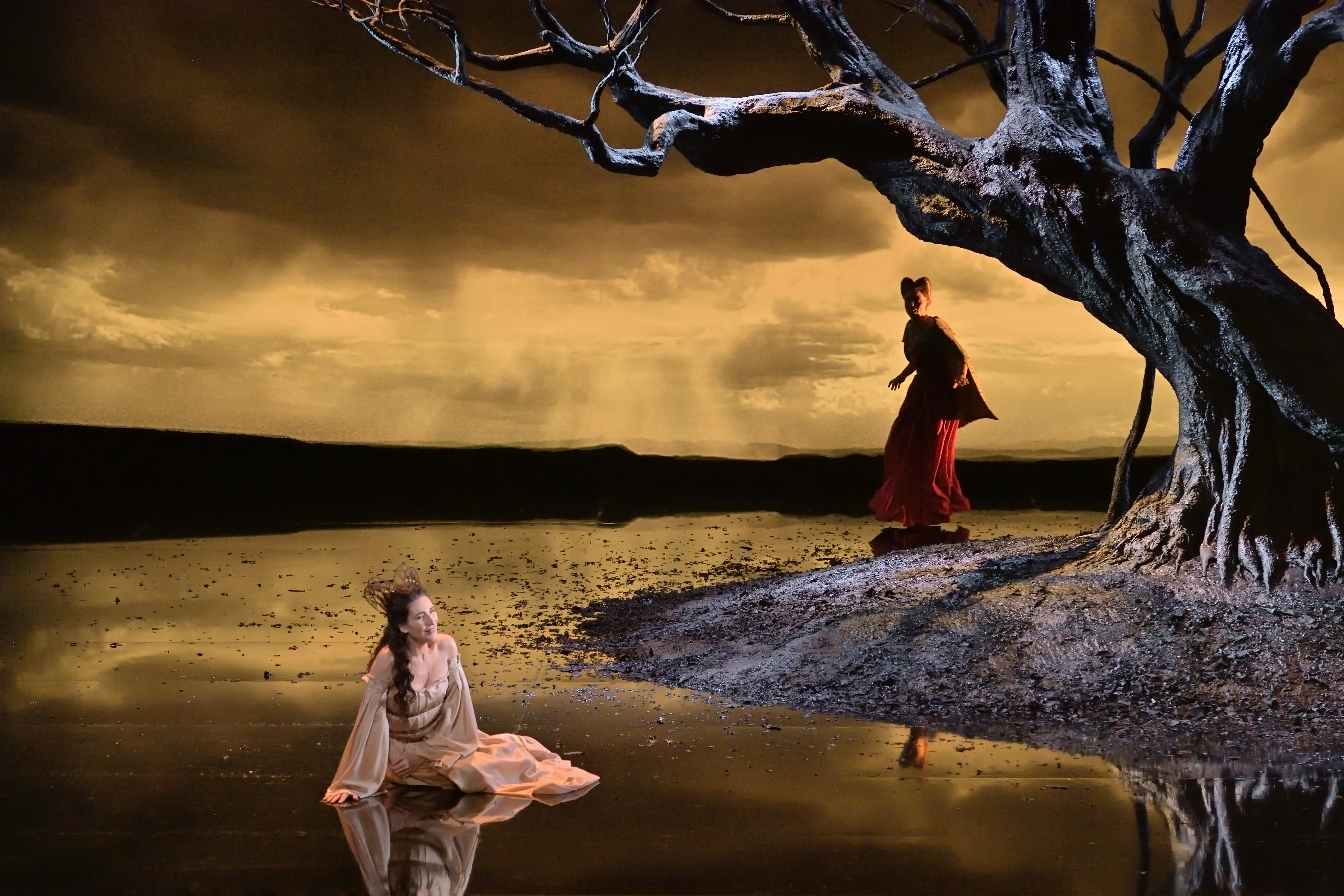 Reste donc le talent des interprètes et l’allant de Christophe Rousset à la baguette dirigeant l’orchestre des Talents lyrique en pleine forme et dont il extrait le meilleur pour exprimer la profondeur d’une partition riche de nuances. Véronique Gens connaît parfaitement son Armide, le fond de son âme et ses méandres. Elle est tout entière vocalement et scéniquement le personnage. Une vraie tragédienne et l’héroïne de cette soirée, exprimant les nuances de son personnage, puissance et faiblesse, capable aussi d’intériorité. Il n’en est pas de même de Renaud, Ian Bostridge, dont la voix en ce soir de première semblait tendue et aussi raide que son interprétation, sans nuance ni expression aucune. Le baryton-basse Edwin Crossley-Mercer vocalement imposant impose toute l’autorité de son personnage. Anaïk Morel, bien qu’empêtrée dans son costume, est une Haine inquiétante et rageuse que sa voix large de Mezzo-soprano accentue davantage. L’engagement sans faille du baryton Philippe Estèphe (Aronte / Ubalde) et du ténor Enguerrand de Hys (Artémidore / Le chevalier Danois), chacun dans leur double rôle, alliant expressivité de la voix et un sens du jeu certain fait merveille. De même les soprani Florie Valiquette (Sidonie, Mélisse, une bergère) et Apolline Raï-Westphal (Phénice, Lucinde, Plaisir et une naïade) voix suaves aux souples et sensuels aigus, offrent un contre-point lumineux au sein de cette tragédie. Le chœur Les éléments, préparés par Joël Suhubiette, font oublier quelque peu la maladresse (sic) de leur jeux (dont ils ne sont certes pas responsables) par leur grande musicalité et leur talent évident. L’enchantement de cette soirée fut c’est certain de ce côté-là, de la musique de Gluck, qui aura su résister à une mise en scène dont on attendait beaucoup, sans doute trop, et la déception de ce côté-ci fut à la hauteur de l’attente.