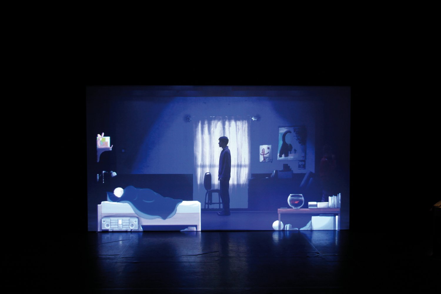 Présenté comme un spectacle pour enfants parce que le personnage principal est une petite fille, Vesna, et que s’y mêle deux niveaux visuels, celui du dessin animé et celui, derrière un rideau en tulle, plus réel avec des incrustations de personnages, le père et la mère ou des visions de la petite fille en ombres chinoises. Outre la bande son qui restitue des bruits de la vie quotidienne, un musicien sur scène accompagne le spectacle sur un instrument électronique appelé « ondes Martenot » utilisé pour les dessins animés, en créant des atmosphères dramatiques musicales qui s’apparentent à des bruitages révélateurs d’une tension, d’une terreur ou de quelque chose de plus doux.