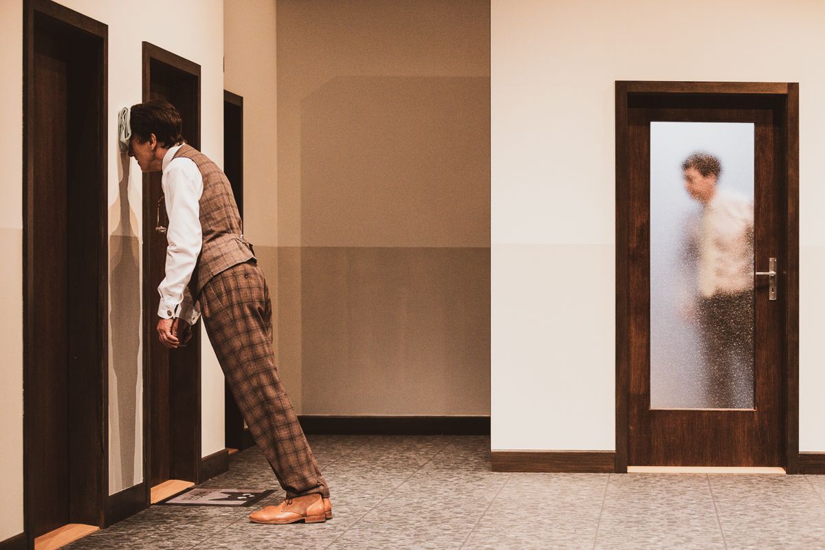 Une création de Christoph Marthaler reste toujours, quoiqu’on écrive, une énigme. Aucune idée, n’échappe pas à cette règle. Rien que le titre déjà résume l’impuissance relative de la critique sur cette création en trompe l’œil. Car trompe l’œil. Dans ce décor qui évoque un entre-deux, palier aux multiples portes communicantes, où il ne semble y avoir aucune issue, aucun échappatoire, l’art de tourner en rond atteint ici un haut sommet phénoménal dans l’absurde et le surréalisme. Tenter de résumer ce qui se passe là, relève du défi. L’art de tromper l’ennui, de palier le vide vertigineux de l’existence, de cingler en vain le dérisoire d’un quotidien des plus mornes, on pourrait dire ça. Mais c’est bien plus retors. Ici les boîtes aux lettres vitupèrent des injonctions, éructent des bibles, crachent des prospectus à la pelle… Le radiateur crachote et glougloute salement avant de déclarer de vive-voix sa révolte et son indépendance. Les plombs sautent. A vrai dire, l’intérêt est ailleurs. Chez ces deux-là, Graham F. Valentine et Martin Zeller, qui habitent ce lieu au milieu de nulle part, familiers de l’univers de Christoph Marthaler. Le premier, grand échalas écossais, acteur et chanteur à l’occasion et le second, joueur de viole de gambe et violoncelliste baroque, acteur aussi à l’occasion. Duo improbable, voisins aléatoires, frères plus ou moins ennemis, dans cet espace où chacun tue le temps comme il le peut, ensemble ou séparément. On joue du Bach et du Wagner, du moins tente-t-on, chante du baroque anglais avec voix de haute-contre. On lit des poèmes étranges et insensés. On fête son anniversaire. Des phrases aux assonances singulières se métamorphosent en symphonie bruitiste pour un seul homme. On passe d’une porte à l’autre comme on abolie toute frontière. On pose des énigmes auxquelles on ne répond pas. On songe à cambrioler son voisin. On attend et on patiente et réciproquement. Il semble ne rien se passer mais, comme toujours chez Christoph Marthaler, dans ce rien c’est tout un univers brindezingue qui s’engouffre à bas-bruit et fait basculer la banalité et l’ennui dans le non-sens le plus absolu, le vertige métaphysique et la poésie la plus farfelue. Création sans queue-ni tête, jeu dada du marabout-bout-de ficelle, comme on veut, tout s’enchaîne malgré tout le plus naturellement du monde. Rien n’étonne plus et tout enchante. On ne trouve rien à y redire, au contraire, embarqués sans retour possible que nous sommes par ces deux-là, sérieux comme des papes. A vrai dire, cette création n’est qu’un magnifique prétexte pour le portrait-chinois de deux acteurs-chanteurs-musiciens emblématiques qui traversent impavides depuis longtemps l’univers de Christoph Marthaler. L’impression fugace sinon hallucinée d’être projetés sans effraction dans la tête de ces deux énergumènes, cerveaux ouverts à deux battants, sans qui le monde de Christoph Marthaler ne serait sans doute pas tout à fait ce qu’il est…
