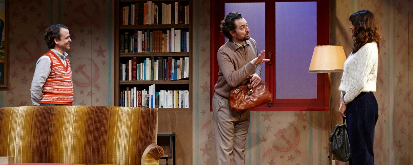 Après des pièces centrées sur le milieu du théâtre ou du cinéma (Thé à la menthe ou t’es citron ?, Silence on tourne !), et des incursions dans les établissements de cure (Frou-Frou les Bains), voici que Patrick Haudecœur, ici flanqué de Gérald Sibleyras, s’attaque au drame historique. L’action se passe à Berlin Est. Emma et Ludwig sont jeunes et beaux (surtout elle). Ils rêvent d’un avenir meilleur, qui ne peut être que de l’autre côté du mur. Coup du destin : l’aide-soignante de la vieille mère de Werner Hofmann, qui a la grande qualité d’habiter pas loin d’un tunnel, a un bête accident. Emma va s’introduire chez elle, Ludwig creusera, la lumière est au bout. Certes, Werner est agent de la Stasi. Mais quand on s’aime, et qu’on aime la liberté…