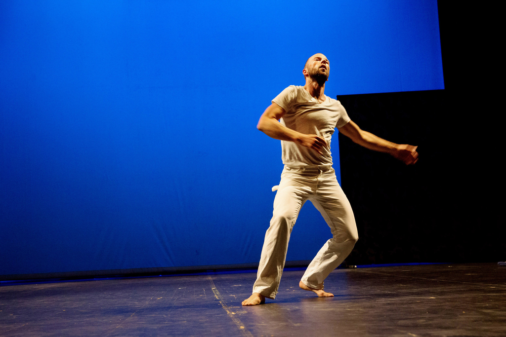 Il est toutefois difficile de qualifier « Bound » de pièce complètement improvisée. L’œuvre s’avère également très cérébrale. Aux épisodes improvisés très sonores succèdent des moments plus lents, où le danseur se recroqueville sur son corps, sur ses pensées. On est là davantage dans l’introspection et la réflexion que sur le mouvement. Si ces nouvelles séquences viennent donner un souffle spirituel à la pièce, elles n’en demeurent pas moins un peu austères, et souvent plombées par un symbolisme insistant.