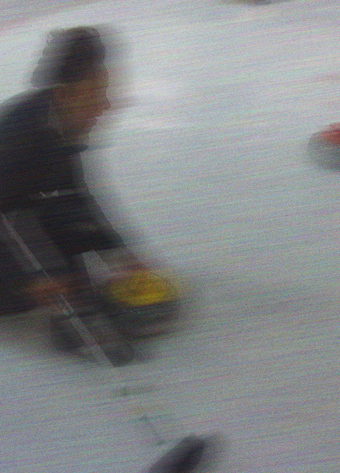 Le curling est un sport de précision pratiqué sur la glace avec de lourdes pierres en granite poli. Le but est de placer la pierre le plus près possible d’une cible dessinée sur la glace, appelée maison. C’est aussi la scénographie qu’a choisi Daniel Jeanneteau pour son ennuyeuse mise en scène de « Bulbus ».