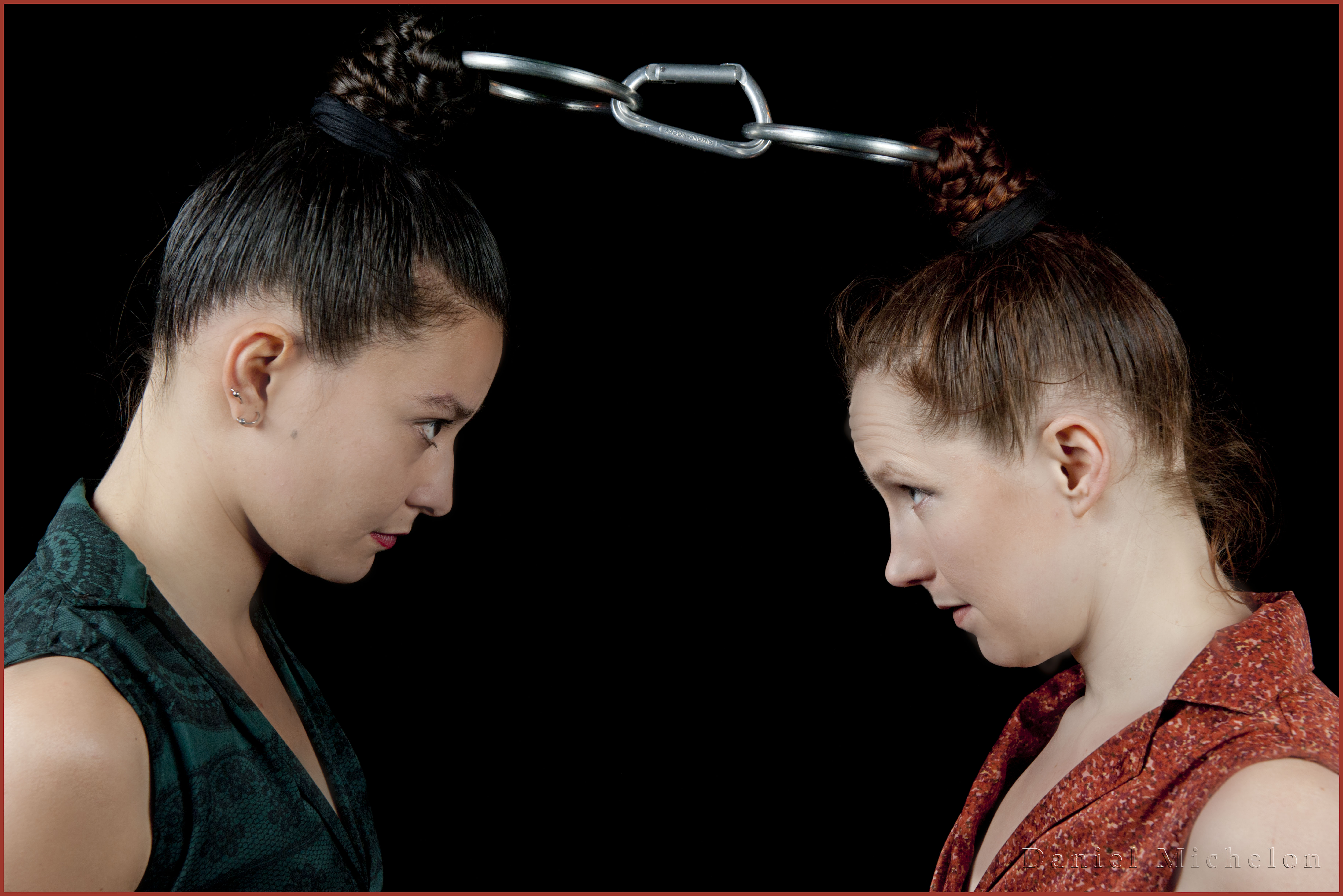 Deux artistes Finlandaises nous prennent la tête pourrions-nous dire, en suspendant les leurs à une structure métallique, grâce à de jolis anneaux impressionnants et retenus par leurs chignons serrés. Nous souffrons pour elles, à les voir s’envoler pesamment de cette façon. Nous sommes ébahis. Et nous allons voir des merveilles sans aucun doute.
