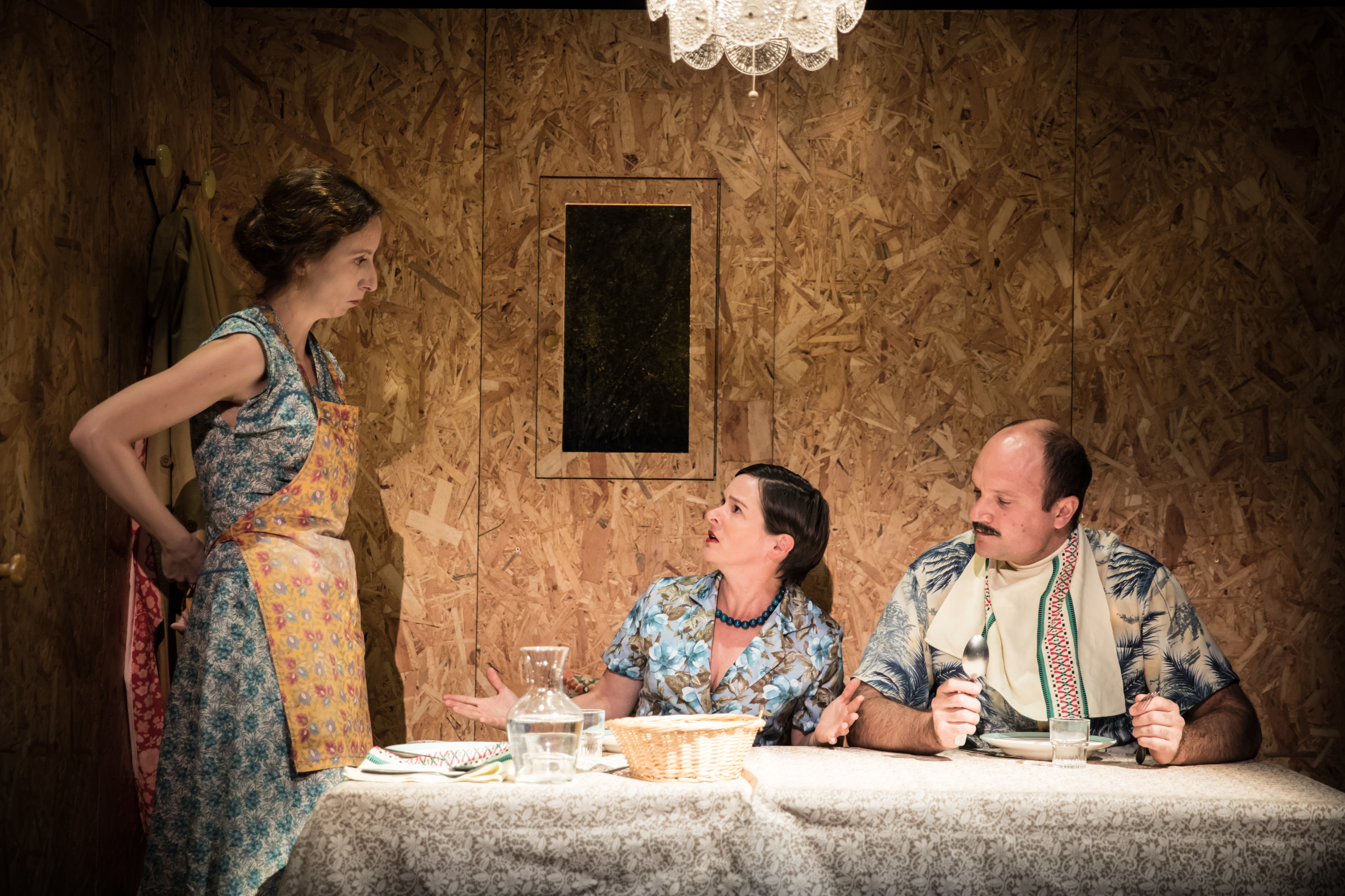 Pour le reste, autour de Sadie et Harriet, fortes et détruites, et autour desquelles tourne la pièce, il pourrait naître un espace plus terrible : les autres personnages sont trop ou pas assez, demi-teinte et déséquilibre, entre les deux. Du féroce où de l’hilarant aurait peut-être mieux mis en valeur les méandres douloureux des deux frangines, celle qui essaie de fuir, celle qui est emprisonnée. Les profondeurs, les virages, les multicouches de chacun auraient pu apparaître plus clairement, douloureusement, ou bien ici où là plongés dans un fantasque étrange et entraînant. De l’essence, davantage. Les ambiances naissent tout de même. Des pots d’échappement, l’odeur des pommes de pins, jusqu’à l’étalage des cartes postales, on devine tout. On y est, on part et s’envole, stupéfait par des touches subtiles ou coup de poing.