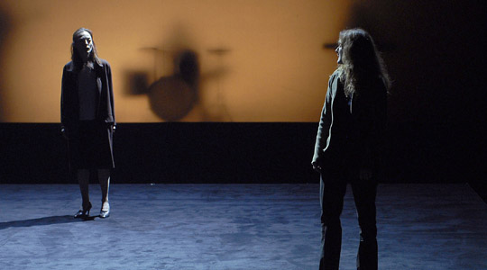 Mais la grande force de cette création est sans doute d’exposer tout ça avec une simplicité désarmante et juste. Plateau nu et – comme à chaque fois – lumières entre chien et loup, une réverbération du son qui donne à l’ensemble un sentiment de flottement, d’irréalité. C’est un cauchemar éveillé mais assourdi, feutré, ne désarmant en rien la violence des propos mais lui conférant une étrange et paradoxale douceur glacée. Joël Pommerat dézingue et pulvérise la famille mais évite avec intelligence la surenchère, l’hystérie. Le texte, direct et sans fioriture de style, se suffisant à lui-même est dit tout aussi simplement, sans effet aucun. Pas de jugement. Les comédiens de Pommerat excellent dans cet exercice on le sait. Toujours en lisière du texte sans jamais être en retrait tout à fait. Joël Pommerat ne désamorce en rien les propos tenus mais l’ironie de son regard sur la famille évite de charger l’ensemble. Ironie qui éclate sans doute dans cette reprise grinçante de la chanson « Le loup, la biche et le chevalier ». On rit de cette reprise fielleuse qui ouvre et ferme cette création. Une création à voir en famille…