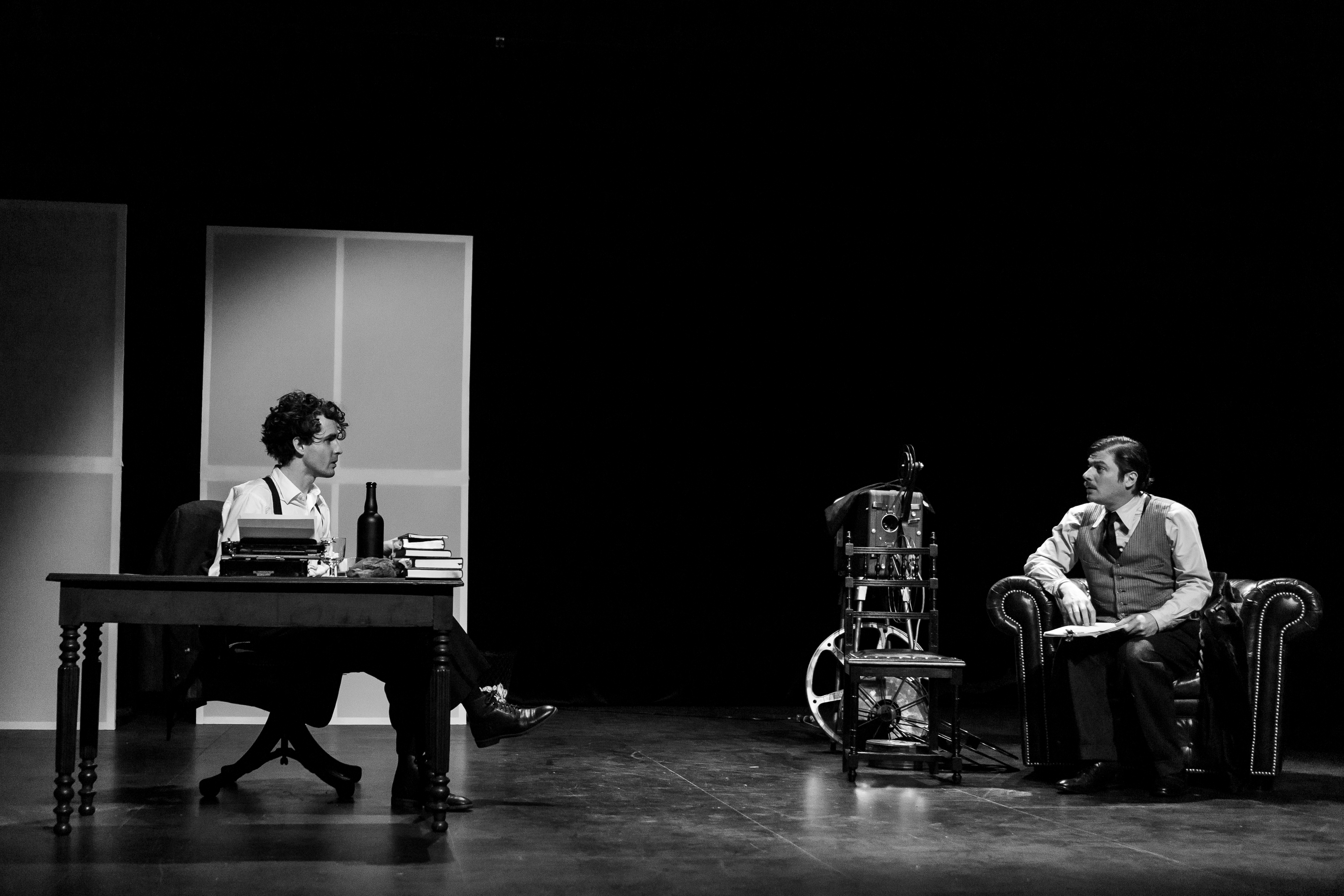 Chaplin 1939 ne joue donc pas seulement sur le registre de l’engagement politique, mais davantage sur des ressorts psychologiques. La pièce s’ouvre par un instantané du génie en pleine création, jouant l’abattement devant Sidney, son aîné qui le soutiendra sans faille dans ses succès et ses échecs, dans ses hauts et ses bas, s’offusquant néanmoins du délire de sa vie sentimentale, car ainsi qu’il est rappelé sans complaisance, Chaplin aime « les matins » en amour, c’est-à-dire les jeunes filles mineures dont il multiplia les conquêtes et en épousa plusieurs, jusqu’à la dernière de trente-six ans sa cadette… En 1939, c’est Paulette Goddard, joliment incarnée par Swan Starosta, qui partage alors sa vie, après avoir joué dans Les Temps modernes et auquel Chaplin confie le rôle d’Anna dans the Great Dictator, dont Charlot est épris. Comme Buster Keaton, les personnages créés par les deux comédiens sont les amoureux romantiques à la scène qu’ils ne parviennent pas à être à la ville, souffrant tous deux incontestablement du syndrome d’abandon et incapables d’aimer autrement que dans l’amour de la séduction, impuissants à éprouver ce vrai amour qui « tétanise », « qui engage », « qui fait mal parce qu’on a peur qu’il s’arrête ». La relation de Chaplin avec sa mère qui donne sans doute des clefs d’explication à cette impuissance à accepter le bonheur et à le fuir, fait l’objet d’un magnifique monologue final sous une simple douche de lumière.