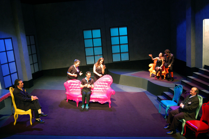 Les costumes de Dominique Bourde font le lien avec le mobilier, chaque comédien est revêtu d’un costume contemporain composé d’une base noire associée à un élément de couleur caractéristique du personnage. Sobriété que l’on apprécie mais qui reste encore un peu crue.