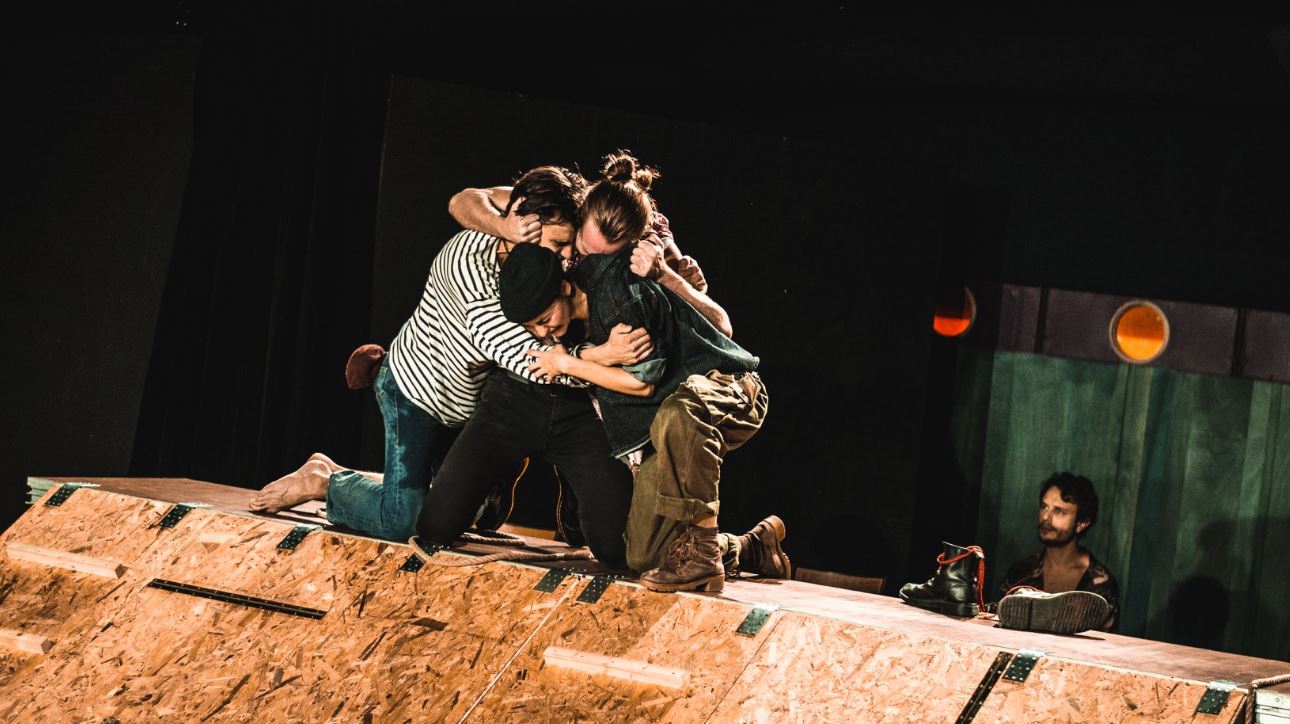 Petit point stérile : la narration se disperse et prend le pas sur le fond de la pièce, ainsi nous nous laissons séduire mais la réflexion fondamentale et politique se perd dans le récit. Par ailleurs la simplicité poétique du jeu des comédiens est amenée avec finesse mais certains moments s’exacerbent et frôle le sentimentalisme. Néanmoins aucun des acteurs ne peut être remis en question, légitime au plateau et précis techniquement chacun brille à sa manière. Cela nous amène à un point capital : la cohésion du groupe. Rare sont ces comédiens que nous voyons réellement s’amuser et heureux de jouer ensemble, la complicité déborde. De manière inconsciente par leurs simples goûts de jouer le groupe incarne parfaitement cette idée de microcosme utopique et éphémère.