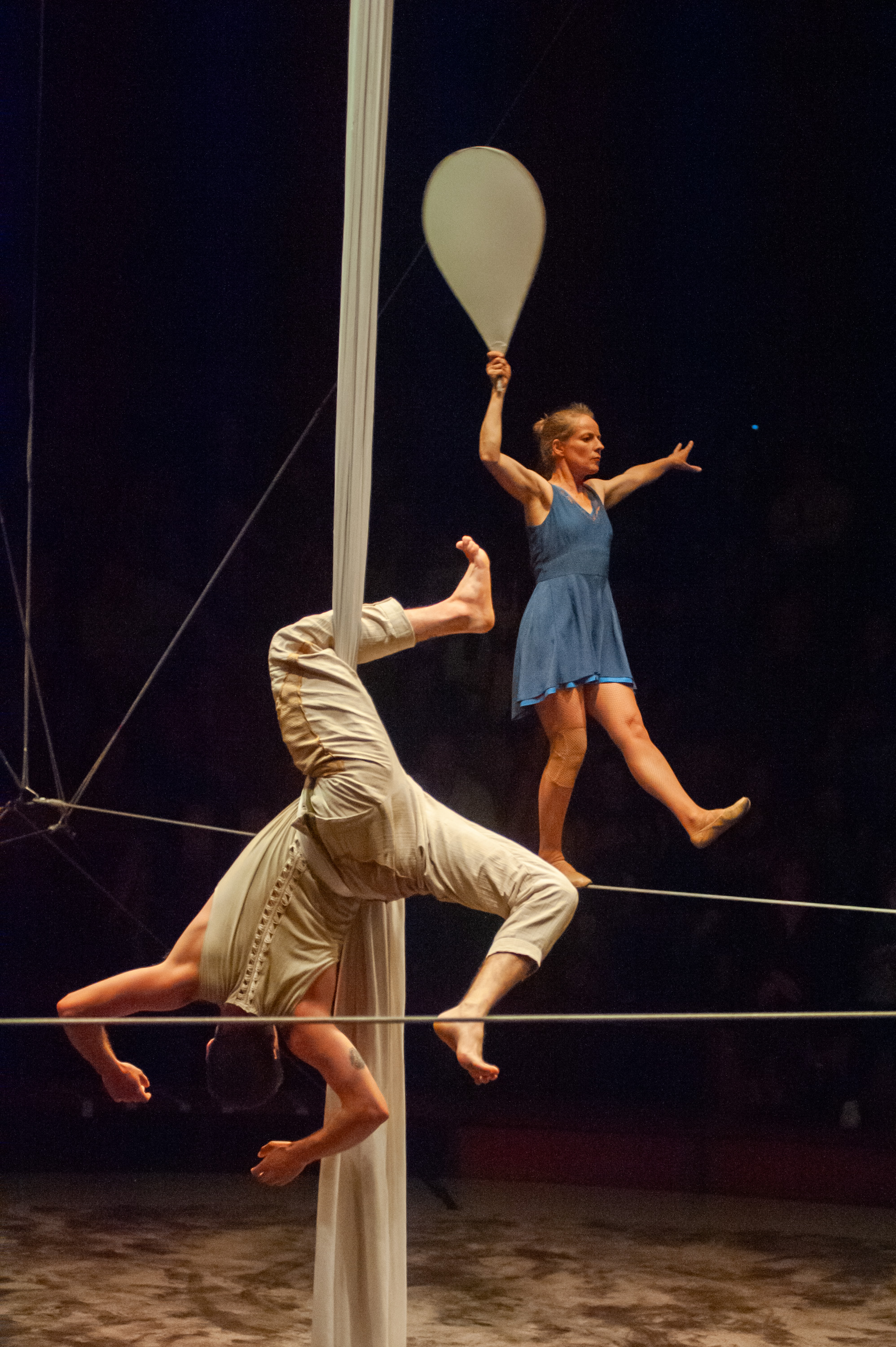 Avec : Valentino Martinetti (danse, acrobatie), Anniina Peltovako (fil, clown), Riccardo Pedri (corde lisse), Molly Saudek (fil), Manuel Martinez Silva (tissu aérien), Marie Tribouilloy (mâts fixe et oscillant), Laurence Tremblay-Vu (funambule), Damien Levasseur-Fortin (guitare, contrebasse), Coline Rigot (violon, voix), Tiziano Scali (électro-acoustique)