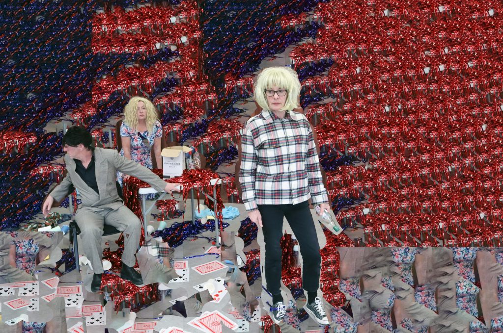 Sur un plateau dévasté d’un lendemain de fête, cadavres de bouteilles et gobelets épars, serpentins et confettis fatigués, débarquent trois individus, pas très frais non plus. S’engage alors, quoi ? Pas vraiment un dialogue, non, mais trois soliloques qui se répondent sans s‘écouter. A vrai dire, une même séquence réitérée par trois fois chaque fois et générée par I.A. Voix atone, sans émotion où ce qui est dit de façon mécanique et dont le contenu fait de clichés déraille très vite, devenant quelque peu abscond sinon absurde, tournant en boucle, est ânonné par nos trois énergumènes en mode lip-sync, play-back qui engendre de drôles de comportements. A vrai dire rien, strictement rien, entre ce qui se passe sur le plateau et ce qui est dit, ne correspond. Gobelets jetés, bouteilles rangées, dérangées… On fait et défait aussitôt ce qui fut fait, on s’affronte, on se réconcilie, on boit, on danse… On change de costumes improbables et de perruques froissées, c’est une galerie de personnages grotesques pour une comédie humaine très vite burlesque. Les situations et les corps s’emballent de conserve, les émotions et les humeurs cascadent, explosent, déconnectées d’un discours sans affect. On ne sait plus très bien où nous sommes, au théâtre peut être, se dit-on, quand des applaudissements incongrus se font entendre et que ces trois saluent comme à la parade. Ou bien alors, les acteurs fatigués, dans un mauvais feuilleton, de ceux produit à la chaîne, joués dans une surcharge émotionnelle et physique en dépit d’un scénario indigent. Il y a quelque chose de pathétique à les voir s’efforcer de lutter en vain et de guerre lasse contre un dialogue qui les empêchent, les dépossèdent d’eux-mêmes contre lequel ils résistent du mieux qu’ils peuvent. La compagnie anglaise Forced Entertainment signe une création certes hilarante mais également franchement inquiétante pour les questions qu’elle pose aujourd’hui sur la crise de la représentation à l’heure de l’I.A. Il y a quelque chose de foncièrement subversif et juste dans cette création plus intelligente qu’elle n’y parait sous le masque du burlesque. On songe à Ionesco pour cette appréhension du langage évidé de tout contexte – la Cantatrice chauve pour exemple – généré ici par l’intelligence artificielle et qui ne donne aucune prise aux émotions les plus ténues, lesquelles ne sont plus que des artefacts abstraits. Ces trois sur le plateau, hésitant entre se plier aux injonctions d’un discours absurde qui les malmènent ou trouver une vérité malgré lui, ne serait- ce qu’une émotion ou le corps arc-bouté, n’expriment rien d’autre que cette inquiétude réelle devant un avenir, une avancée technologique qui les condamne à terme à n’être plus rien. Comme le définit très bien Tim Etchells « Tout est une blague, mais rien n’est drôle. Ou tout est drôle et rien n’est drôle ». Tragique ajouterons-nous. Cold Sweat, devant cet avenir de la création et des arts vivants, un tantinet anxiogène et sans âme se profilant, n’est rien d’autre qu’un acte manifeste de résistance.