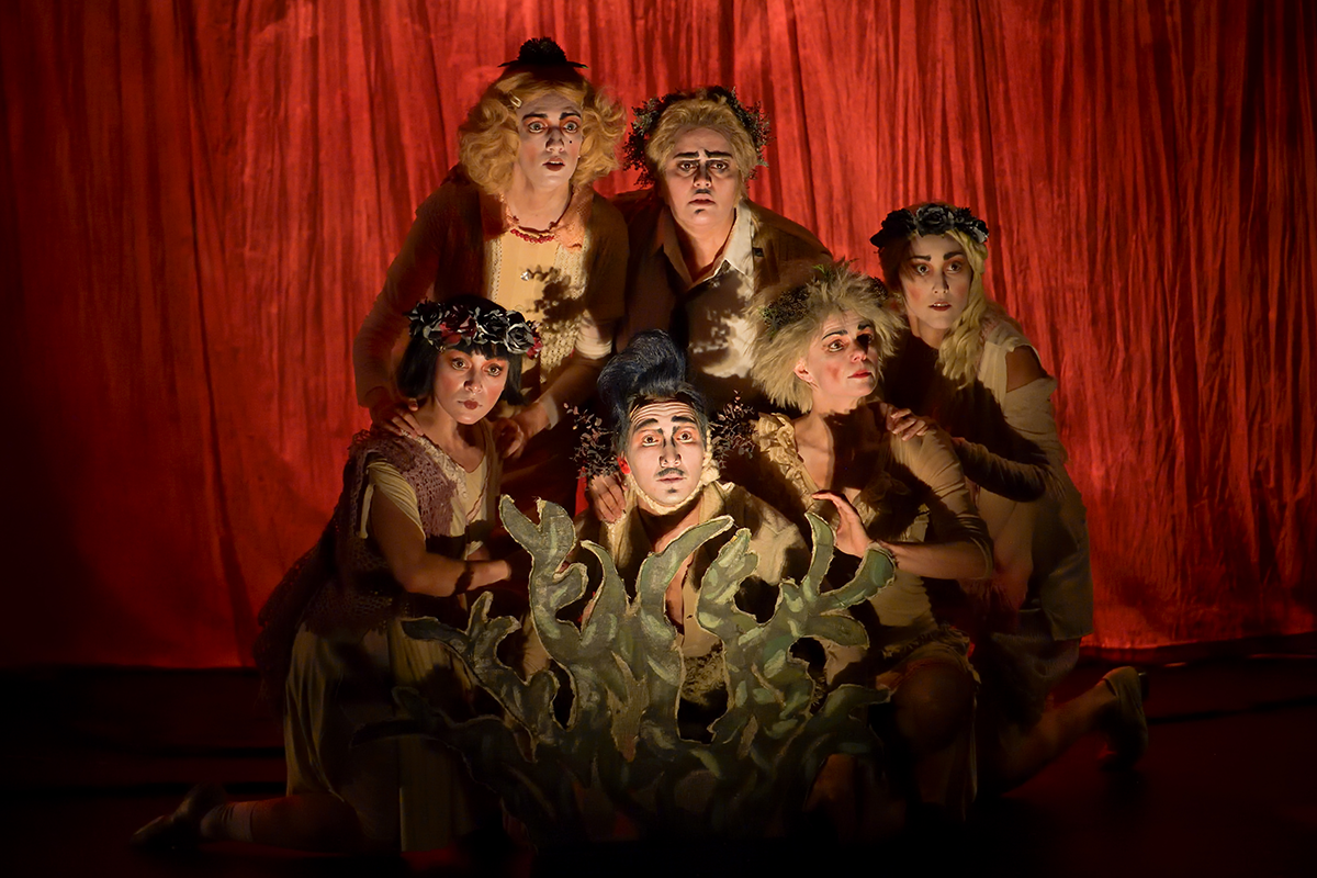 Le genre lyrique ibérique de la zarzuela est une forme d’art total avant l’heure, spectacle pastoral mêlant le théâtre à la danse, les arias (notamment sous forme de lamentos) aux chansons populaires en forme de monologues (tonadas) ou de chœurs à quatre voix (guatros). La musique est résolument baroque, avec une mise en valeur des guitares aux côtés des autres instruments à cordes traditionnels et une présence remarquée et insolite (pour les non spécialistes – rares – des zarzuelas) des castagnettes. La distribution est presque exclusivement féminine, dans la tradition du genre et de l’époque qui ne laissaient chanter les hommes qu’à l’Église et laissait donc aux femmes la possibilité de se travestir pour enrôler des figures masculines. Seul Protée est chanté par un ténor, tandis que les Dieux à grands renforts de maquillages et costumes extravagants sont incarnés par des sopranes. Incombe à une autre soprane le rôle-titre qui va comme un gant à Marie Perbost, virevoltante, audacieuse, enjouée, cabotine et étincelante. Les guatros commentent chaque scène, accompagnés par des danseurs-acrobates qui multiplient des prouesses de souplesse et légèreté, par des apparitions en front de scène. La tête de l’un d’eux (merveilleux David Cami de Baix), mi lutin, mi bouffon, observe, avec facétie, avant le spectacle les spectateurs en train de s’installer dans la salle Favart, absolument comble le soir de la première.