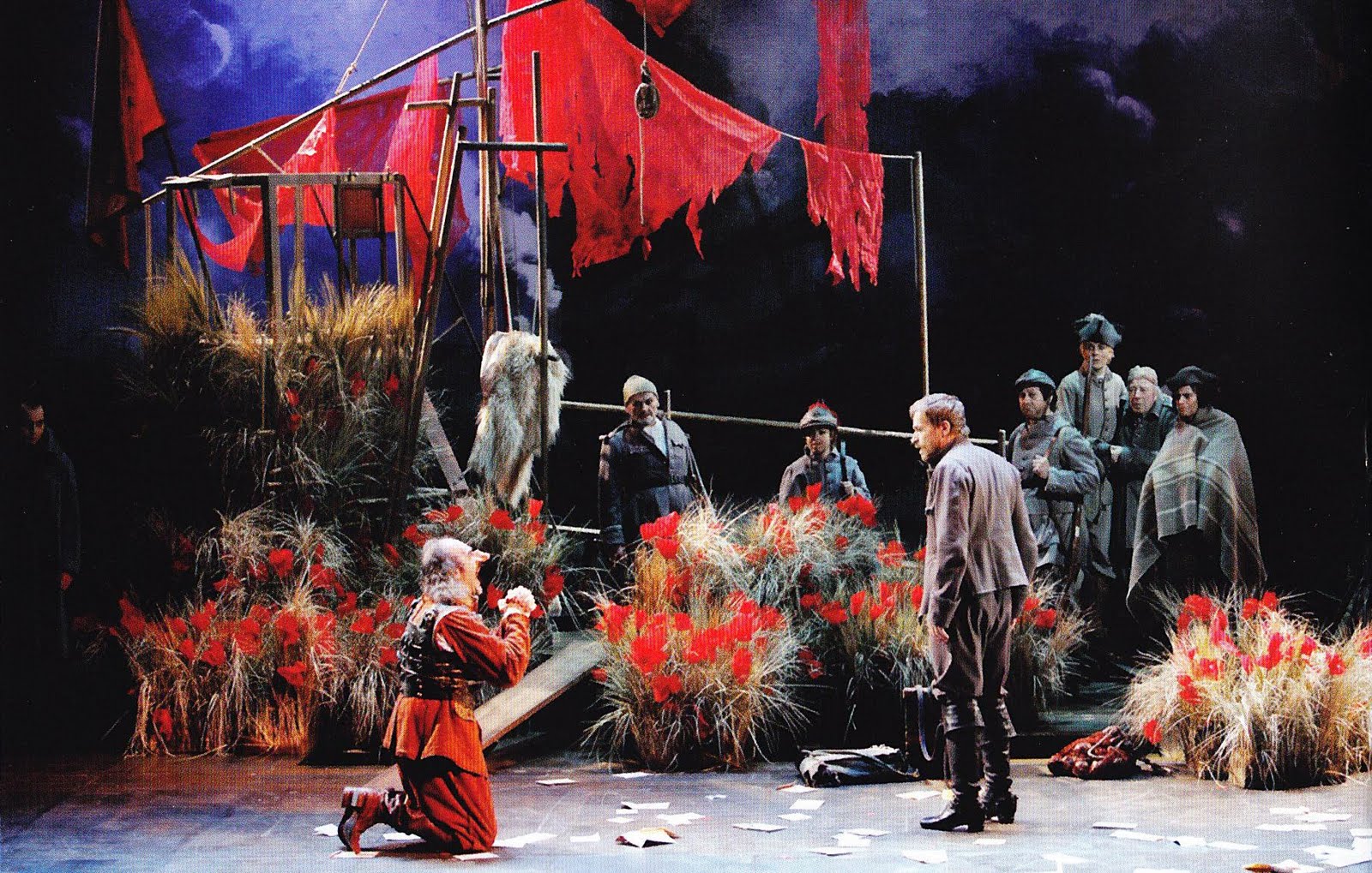 Vuillermoz, surtout, est époustouflant, donquichottesque : héros national, il nous entraîne dans un étourdissant hymne à l’intégrité. À tout prix. Alors, oui, sa tirade du nez laisse un peu coi, désarçonné par la vitesse avec laquelle il a expédié ces vers tant attendus. Mais, on oublie totalement sa rancune, lorsque, en avant-scène et drapé de pourpre, il nous éblouit dans l’énumération des six (sept !) moyens d’atteindre la lune. Derrière son masque italien, le grand corps du comédien se délie et s’envole presque, à la fois touchant et grotesque.