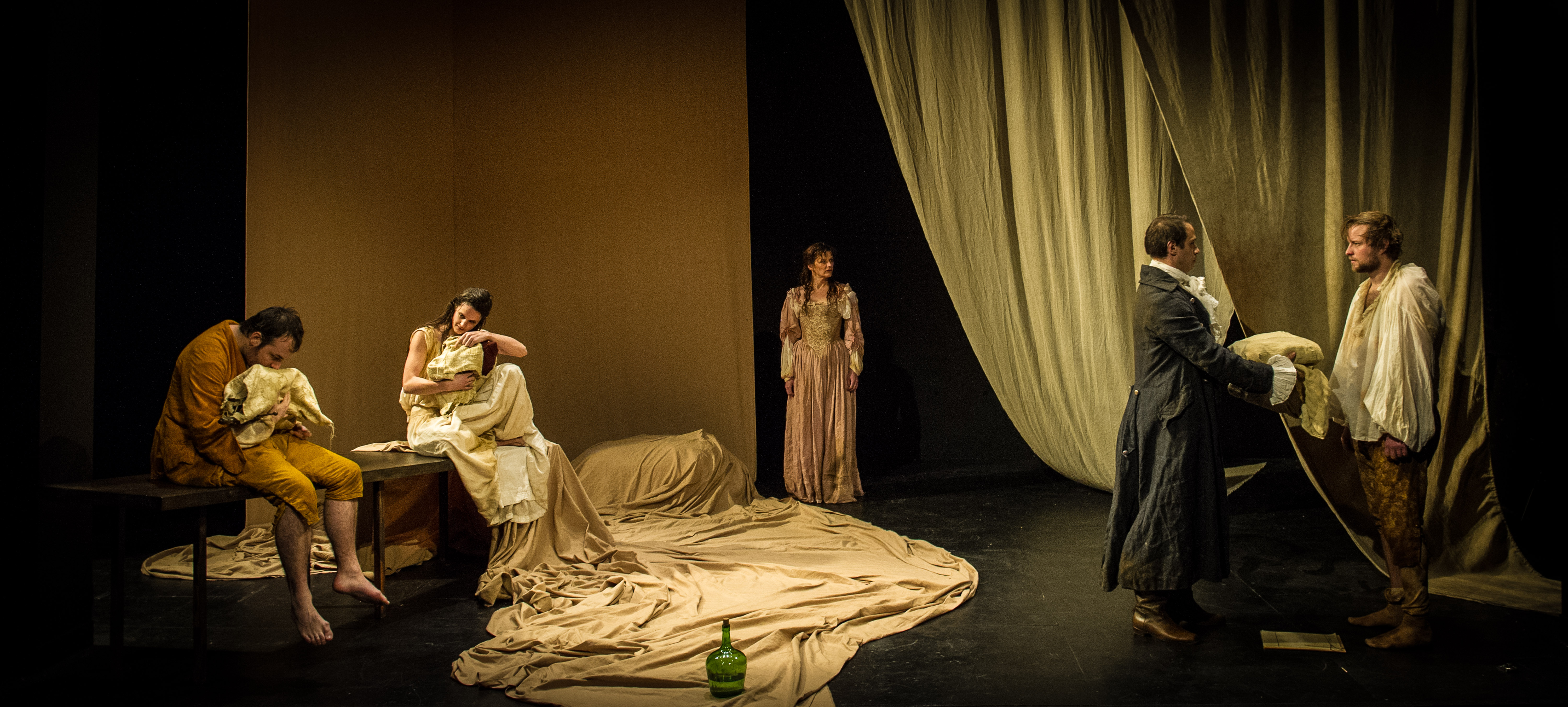 Benjamin Jungers a su trouver le rythme parfait et la tonalité idéale pour faire entendre la langue ciselée de l’auteur mais aussi la dimension tragi-comique de la pièce. De main de maître, il réussit à gérer les tensions entre les personnages, l’inversion des rôles, les excès des uns et des autres en alternant la dimension violente et comique du texte. C’est une belle direction d’acteur malgré une distribution inégale. Benjamin Jungers ne cherche pas à amplifier les choses, bien au contraire, avec élégance et intelligence, il est dans l’oxymore permanent. Celui des costumes, de cette fameuse île, de cette dualité entre les personnages grecs et italiens… Le texte nous parvient simplement avec toute sa force et sa puissance littéraire. En cela, le jeune metteur en scène réussit une petite révolution.