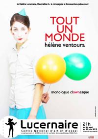 Hélène Ventoura a fait l’école du cirque Fratellini n’en est pas à son premier spectacle (Homme géant qui n’a pas peur, sans les yeux, le dernier numéro), elle intervient en tant que clown auprès de jeunes autistes…