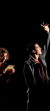 Le deuxième tableau laisse place à la der des ders et à ses Paroles de Poilus. Un simple manteau de soldat, trop grand, marque le désarroi du jeune homme qui va devoir affronter la sale mort des tranchées, en laissant derrière lui son amour, et la vie. Tout fout l’camp ! Depuis la lettre de mobilisation générale du 2 août 1914 à la chanson de Craonne, que les collégiens présents dans la salle ont reconnue, le spectateur assiste à la déconfiture du Poilu qui pensait revenir vite et qui ne reviendra pas.