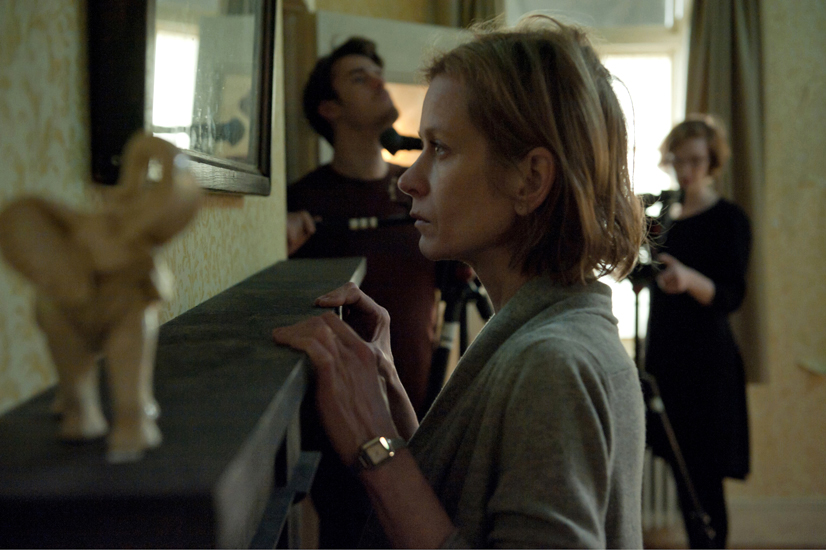 Grâce à un dispositif scénique complexe, Katie Mitchell lie jeu en direct et projection filmique. Les comédiens évoluent au milieu d’un impressionnant déploiement de câbles et de cameramen qui se déplacent à un rythme effréné, étourdissant. Tout semble tourner autour d’une protagoniste (la troublante Judith Engel) insondable dans son mutisme. Apathique, insomniaque, le visage hermétique et les yeux fixes, Anna parait fantomatique, absente. Seule sa pensée nous parvient mais par le biais d’une autre voix, celle d’Ursina Lardi, campée devant un micro dans une cabine insonorisée. Une pensée pour le coup volubile, prisonnière d’un corps, frêle oiseau dans sa cage jaune.
