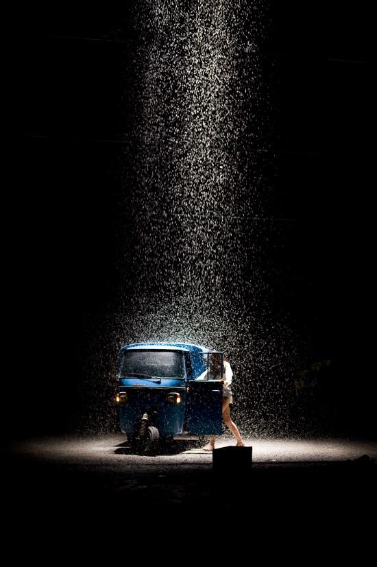 Cette troupe de 18 acteurs est un concentré de pépites. On plonge avec eux sous la pluie d’étoiles, on s’immerge dans la scène d’amour qui se passe dans la minuscule Vespa, on décide à l’avance de l’issue de la noce.